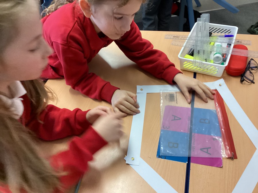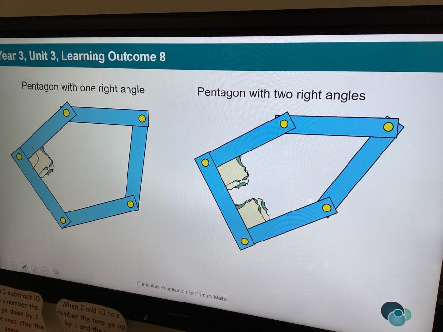 In year 3 maths today we worked in teams to create pentagons and then explored the properties of irregular and regular pentagons.