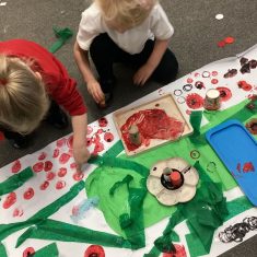 Nursery learnt about Remembrance Day today and observed the silence at 11am. We made poppies and a large class poppy field piece of art. Article 31