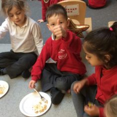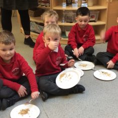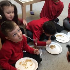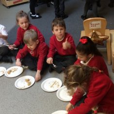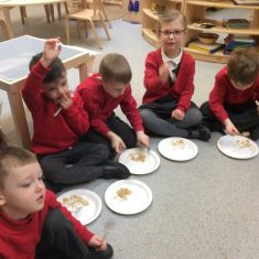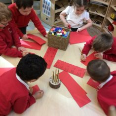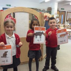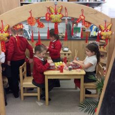 In Reception we have been learning about Lunar New Year. We read a story called ‘The Great Race’ and learnt about why different animals are celebrated each new year. We then developed our ordinality skills by placing the animals in the order that they finished the race. We practised writing the symbols for numbers as well as using our maths resources to make these numbers practically. We enjoyed playing in the home corner this week as it was transformed into a Chinese takeaway, as well as using our mud kitchen outdoors to create ‘muddy noodle soup’. We even had a taste of some Chinese foods such as prawn crackers, spring rolls, egg fried rice and soy sauce- (not many of us liked the sauce!).
