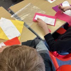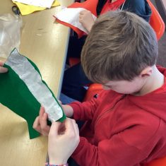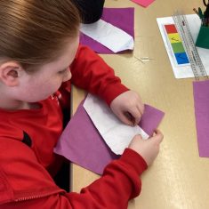 In DT, we used squared paper to make prototype pencil cases. This meant we could test whether our designs were the right size before we started cutting out material. We then used paper templates and pinned them to our fabric, before cutting out our different pieces.