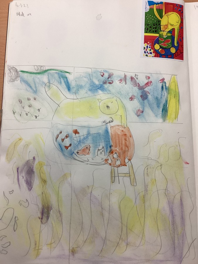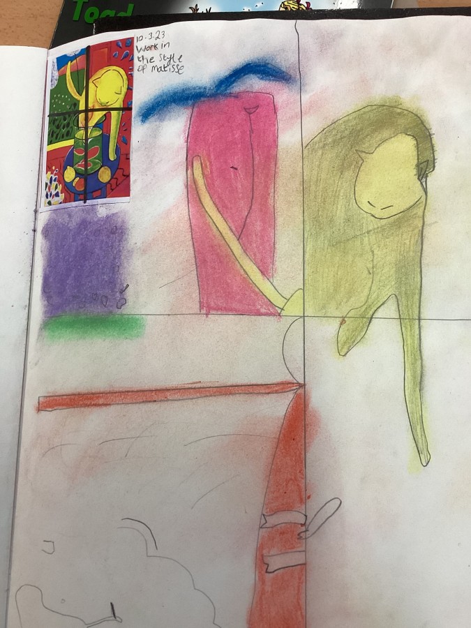 Look at our work in the style of Matisse and our still life drawings!