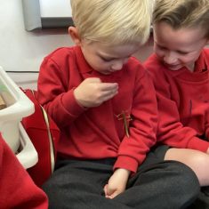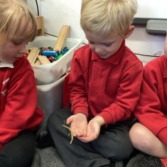 This week we have been finding out about ants and stick insects. We went in a bug hunt in the garden and found lots of different creatures hiding in dark corners and under things! We have made an ant house and had Mrs Short’s stick insects to visit. What a busy week! Article 28