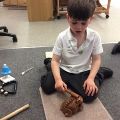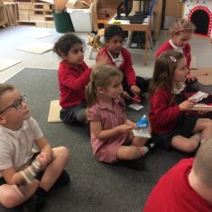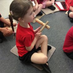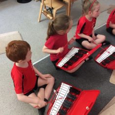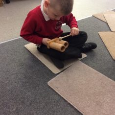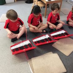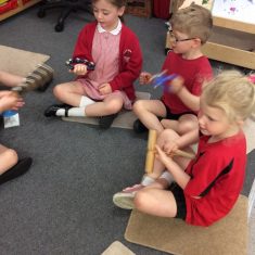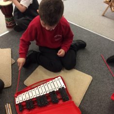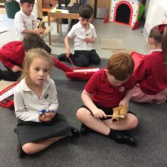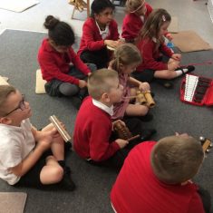 Reception enjoyed learning about pitch, tuned and untuned musical instruments today. We separated the instruments into two groups and then played them to different songs.