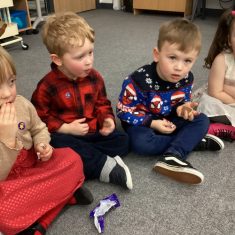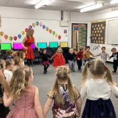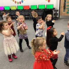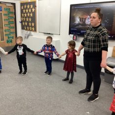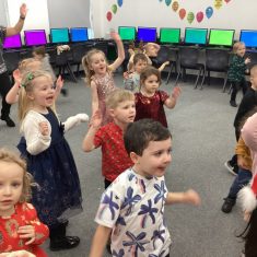 The children in nursery loved dancing at their party today. They all looked very festive in their party outfits. They all joined in the part games and enjoyed their party snacks. The party was so good, even Santa turned up! Article 31