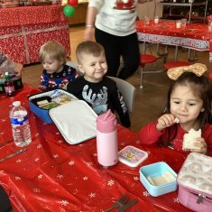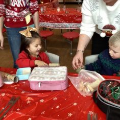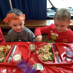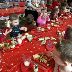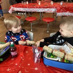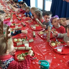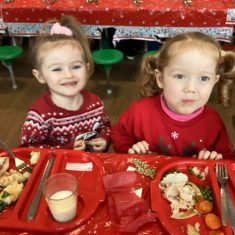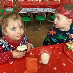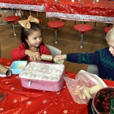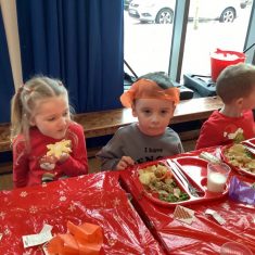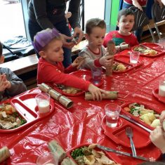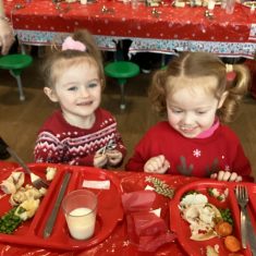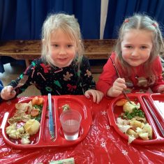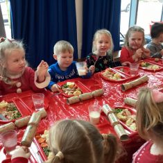 Nursery had a yummy Christmas lunch today, we all enjoyed listening to the Christmas music in the hall and pulling crackers with our friends. Article 27 and 28.