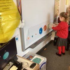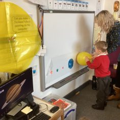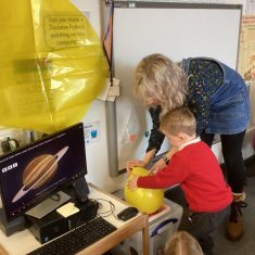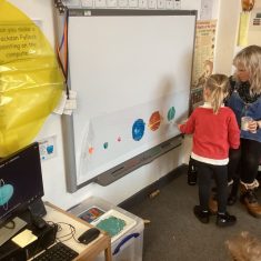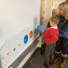 We loved learning about our solar system. We made our own by doing some printing with different sized sponges, blocks and balloons! Then we counted the planets and then made some solar system pictures of our own. Article 28