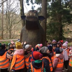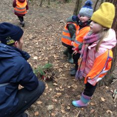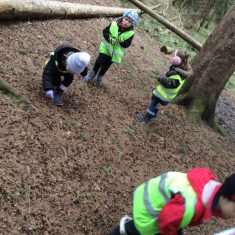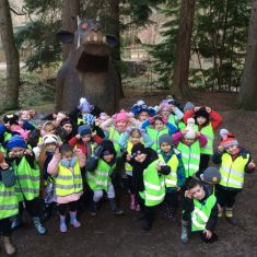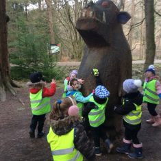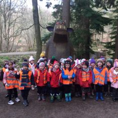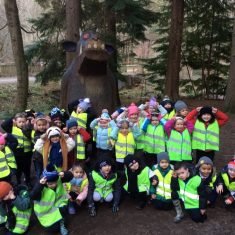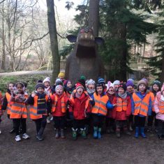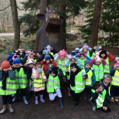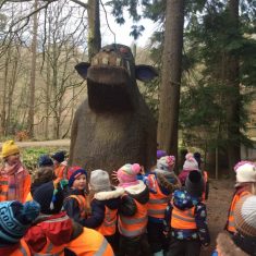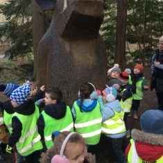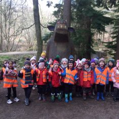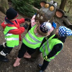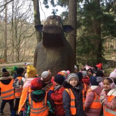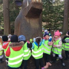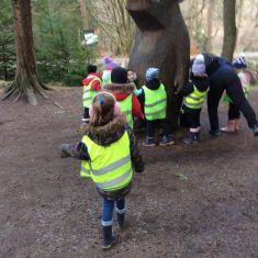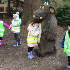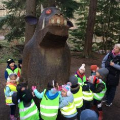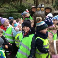 When we arrived at Hamsterley, we met our Forest rangers and walked to the outdoor classroom for lunch. After eating our lunch we split into two groups and set off walking into the trees. On our journey we saw a large Gruffalo statue and enjoyed identifying it’s features! We found the poisonous wart at the end of his nose particularly funny! As we continued our walk we saw the Gruffalo’s child as well as incredibly tall Scott’s pine trees- our ranger told us that these trees were very strong and flexible and could withstand all of the windy weather we have been having lately.