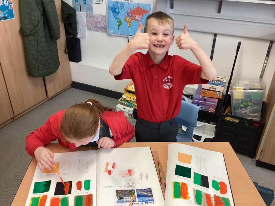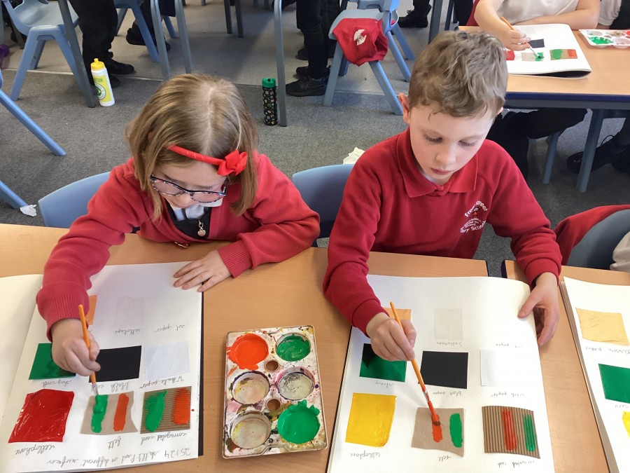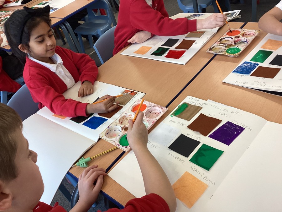As part of this year’s art unit, the Year 3 children explored painting on a range of different surfaces. We discussed which ones worked better than others, and looked at colour brightness and paint and coverage.