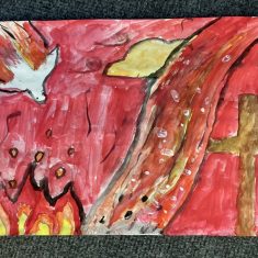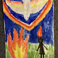In Year 5, we learned about the Christian celebration, Pentecost. Christians use special colours and symbols to represent Pentecost. We made our own art using them. Which ones can you spot?