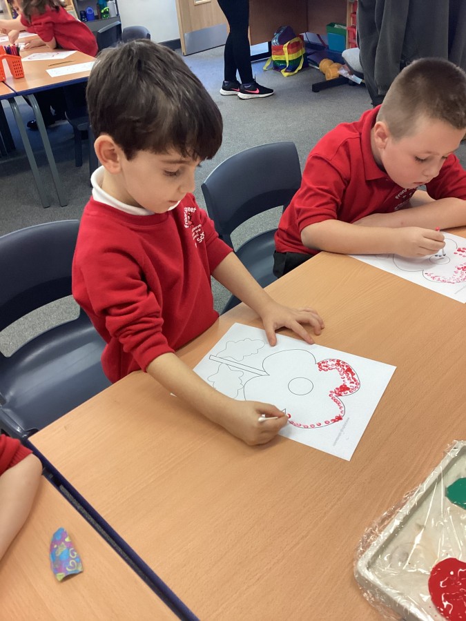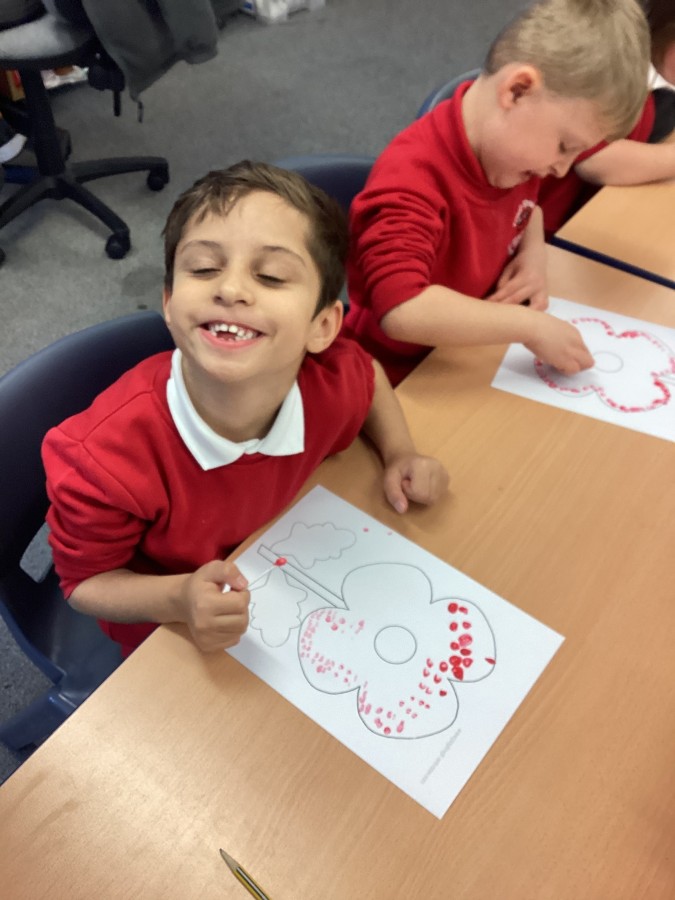 On Friday we all made our own poppy to remember people who keep us safe.