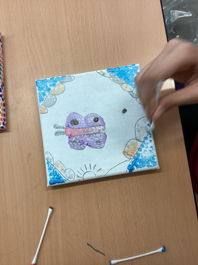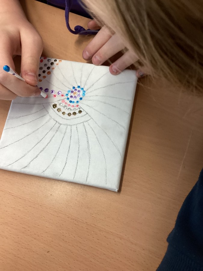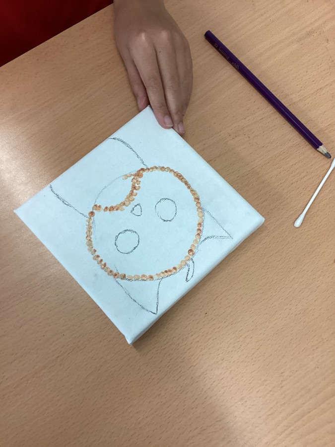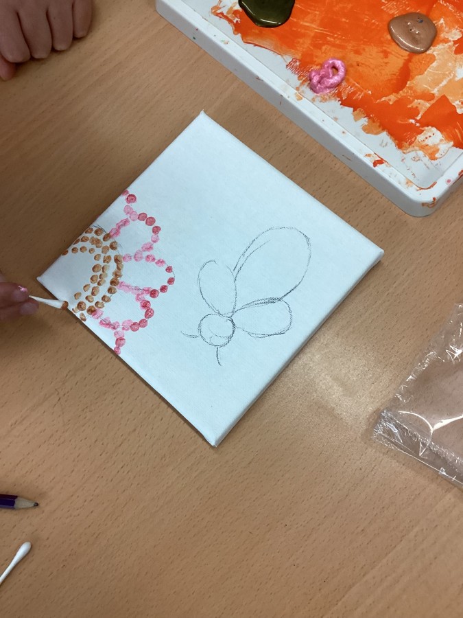 Our first art lesson was discovering the world of pointillism. Gorgeous canvases with a selection of our favourite things!