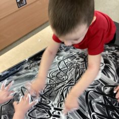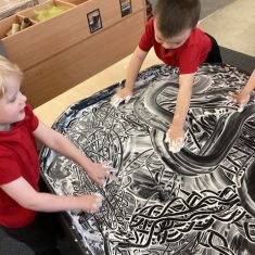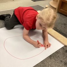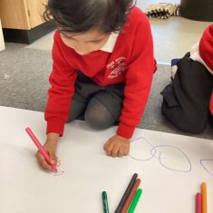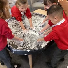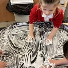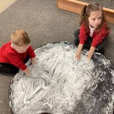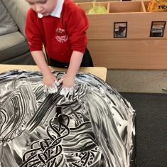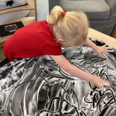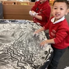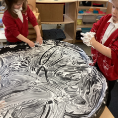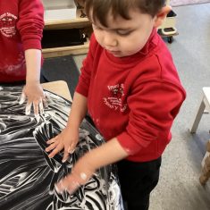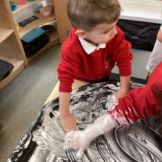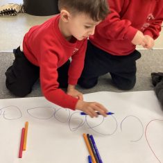 The children in nursery have been moving their bodies to get themselves ready to be amazing writers when they are older. Moving to music, making lines, circle and zigzags in the air, then transferring these movements into mark making on paper or in foam is a great way to learn and have fun!