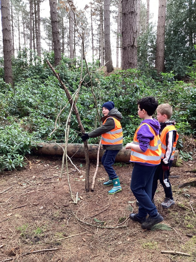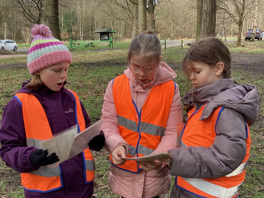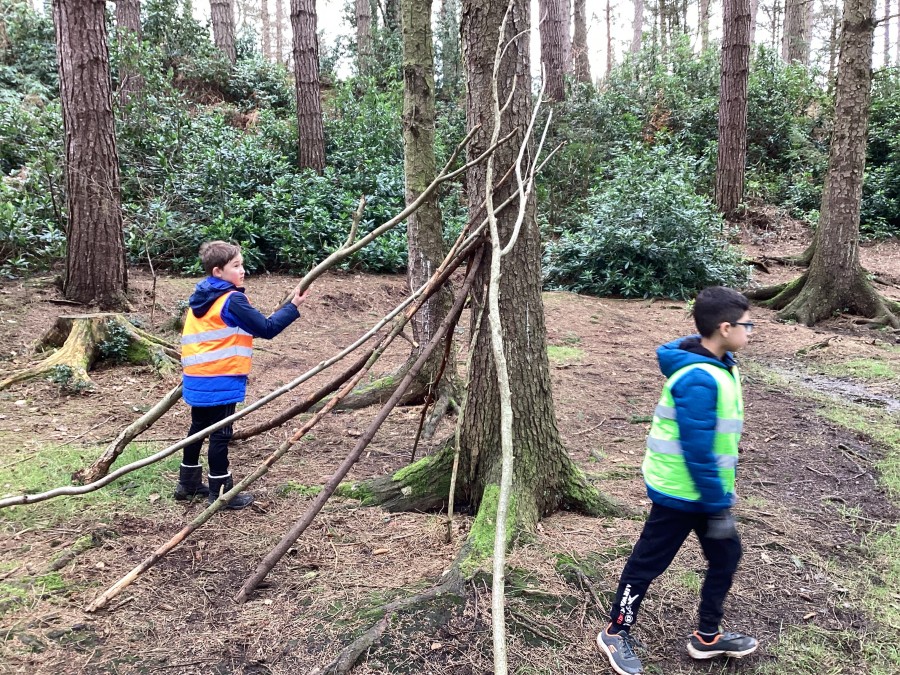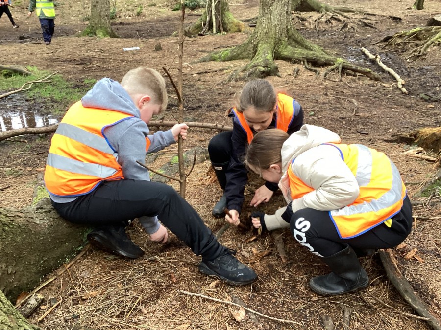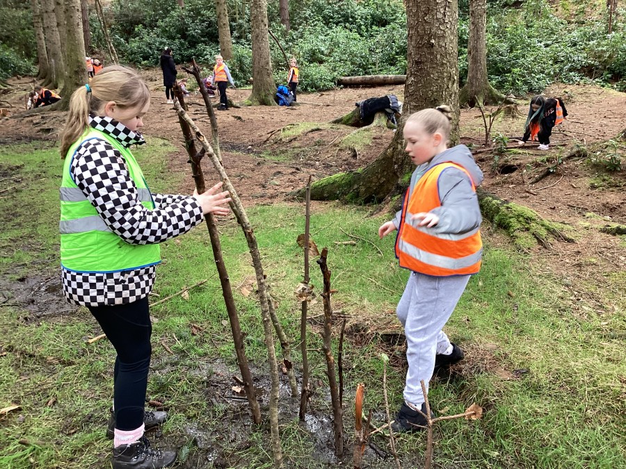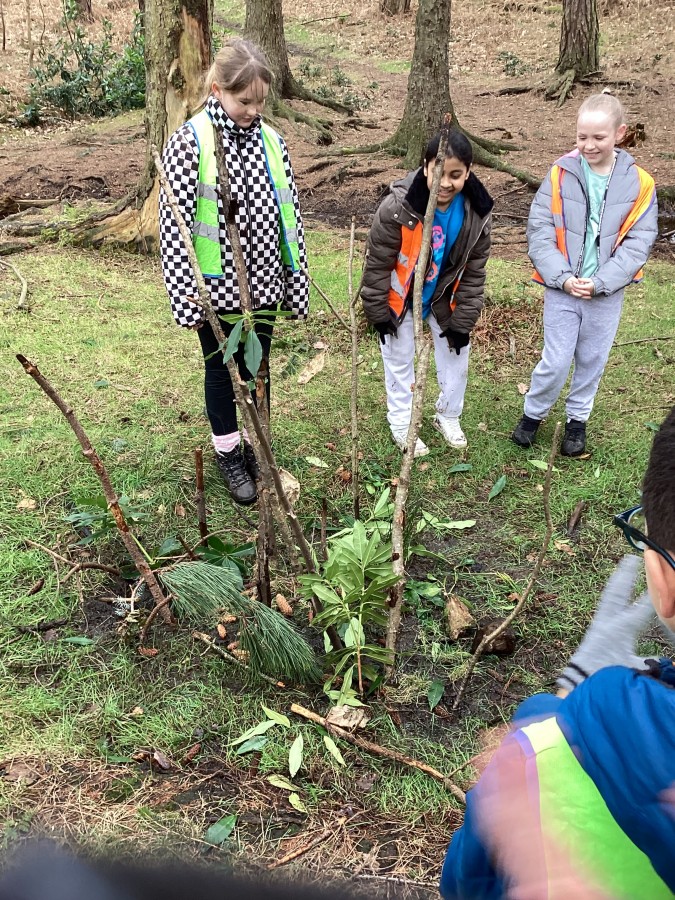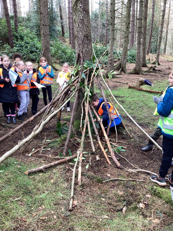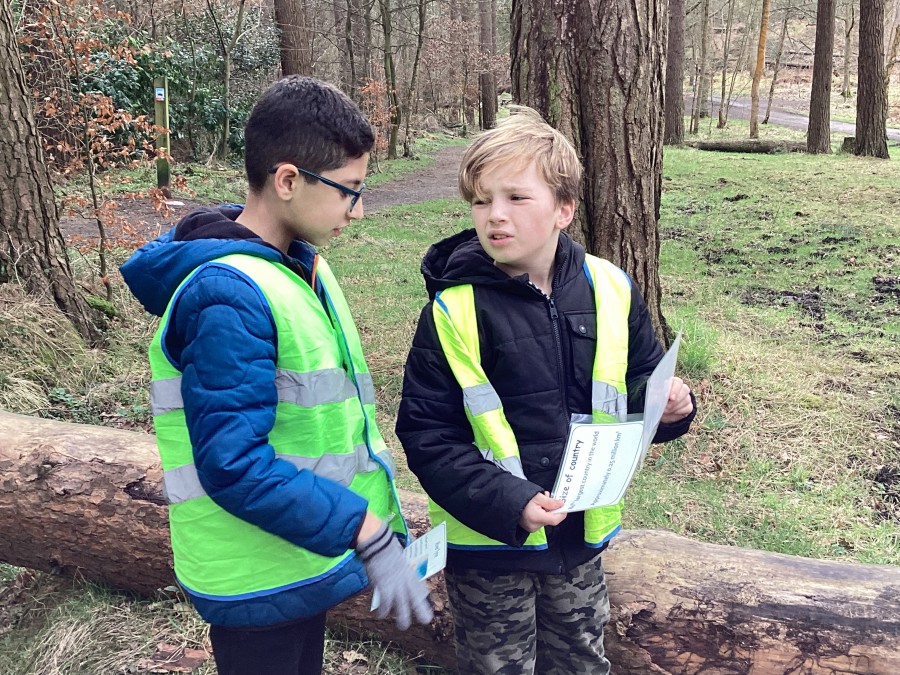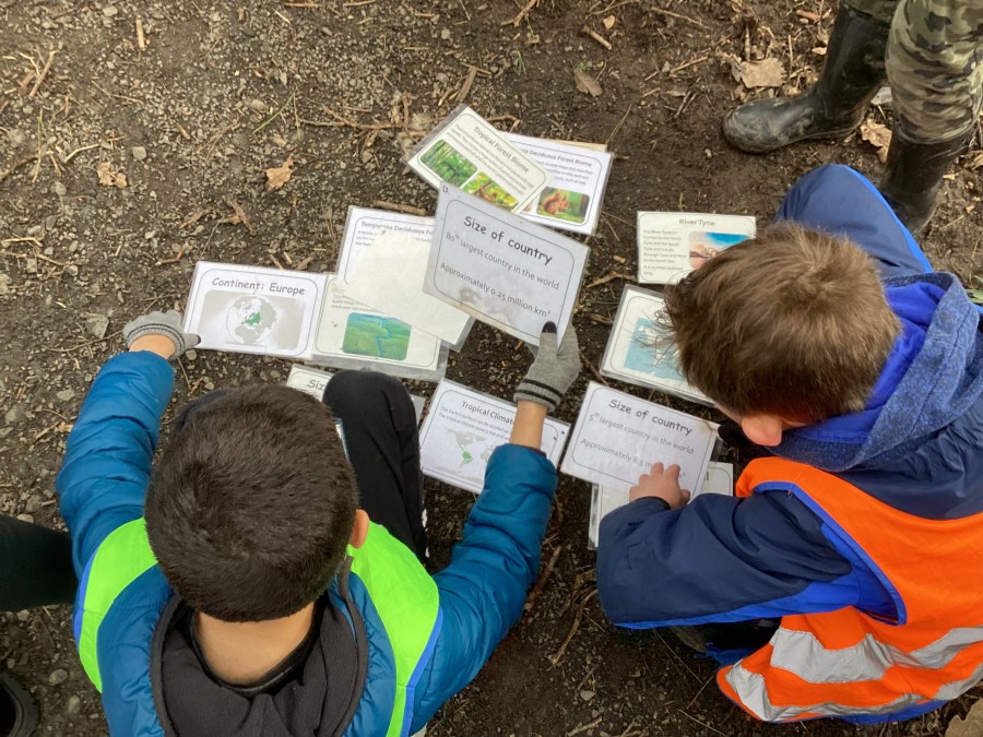 In Chopwell Woods, the children used orienteering skills to find information cards detailing facts about the Amazon Rainforest and Hamsterley Forest to allow them to compare a tropical rainforest with a temperate forest. They then recreated the rainforest layers using natural materials found on the forest floor.