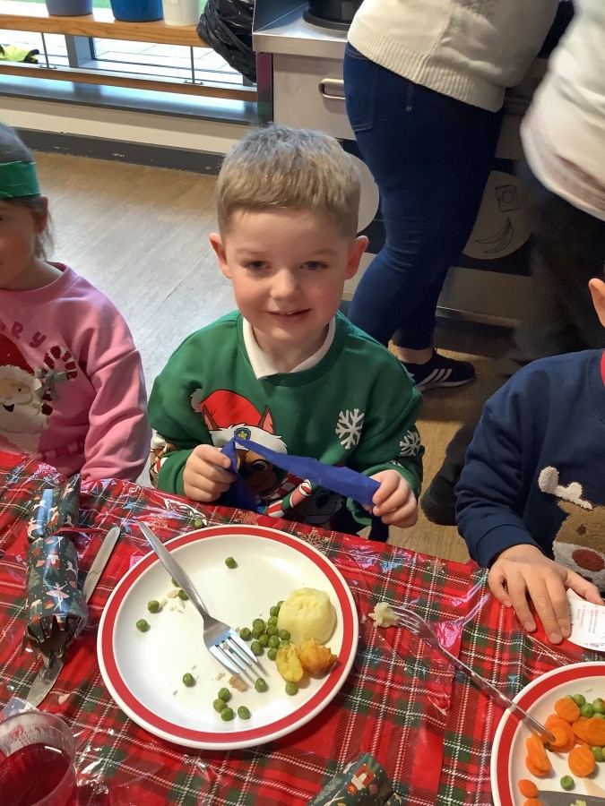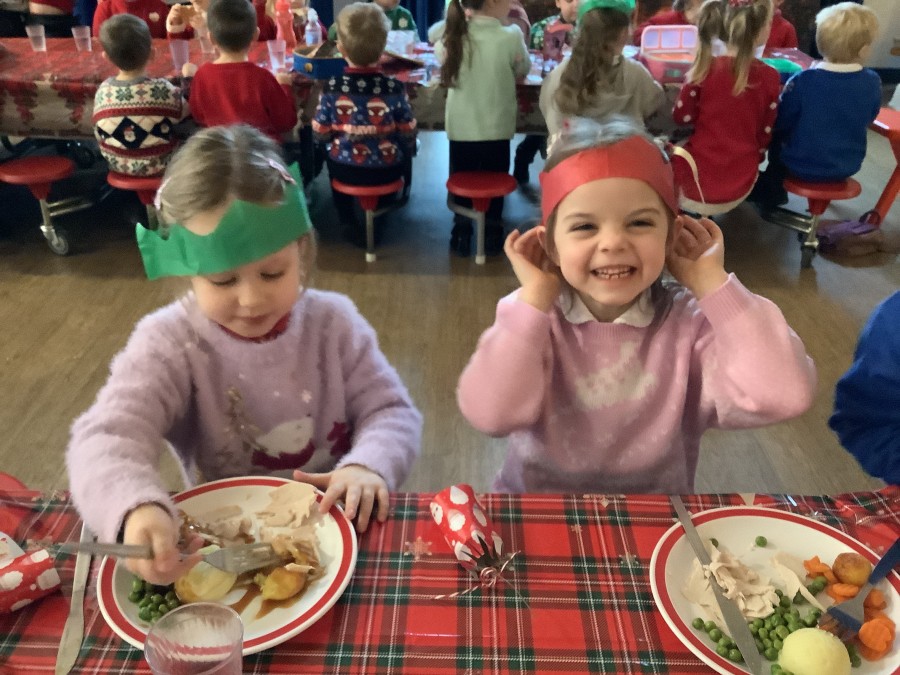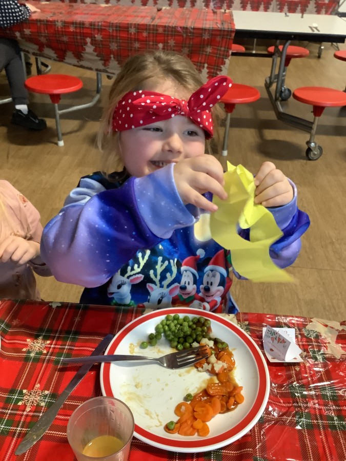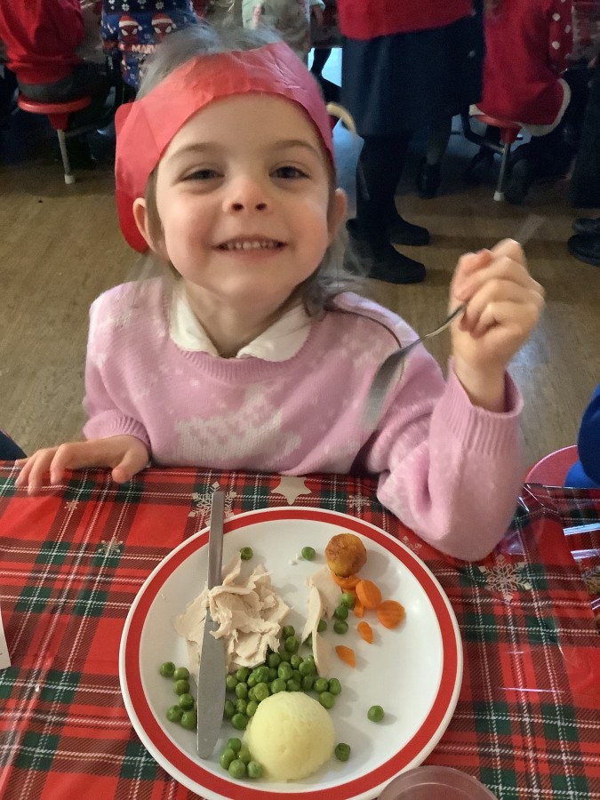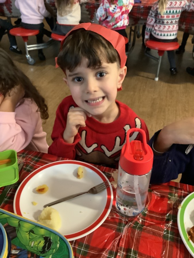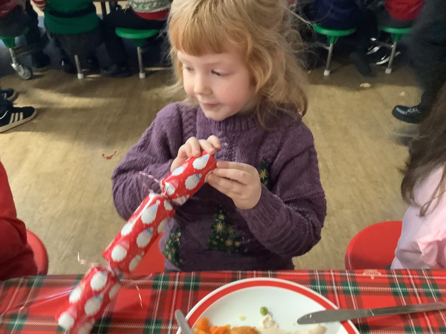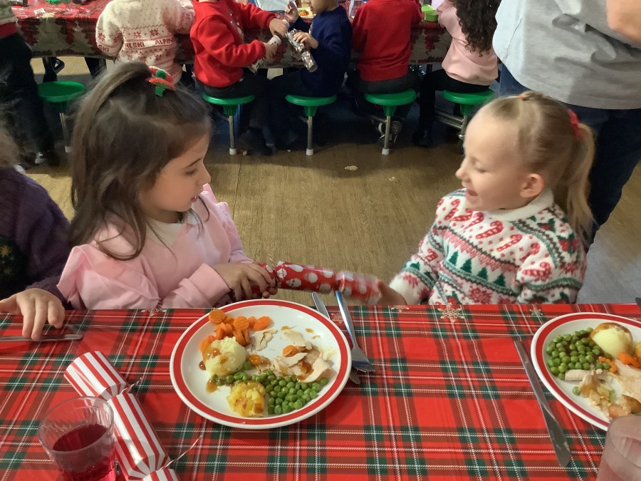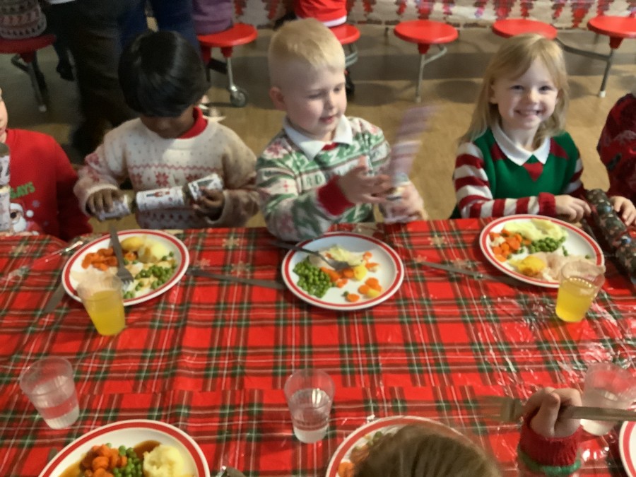 Reception enjoyed their Christmas lunch, pulling crackers, singing to festive music and wearing their Christmas jumpers!