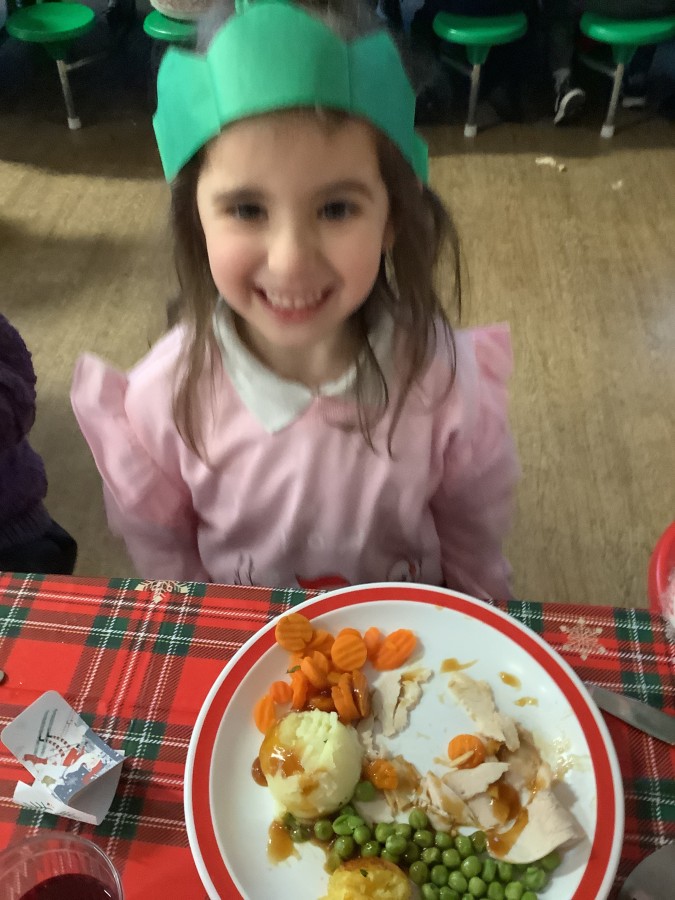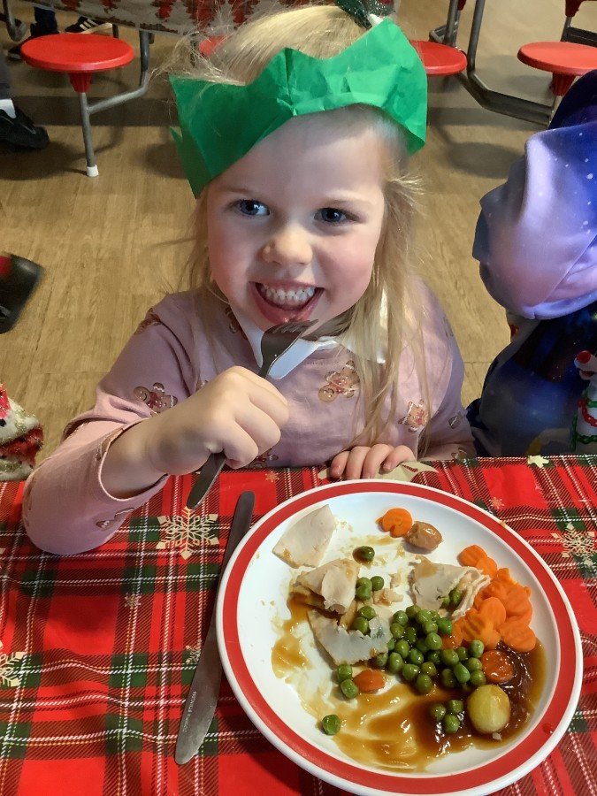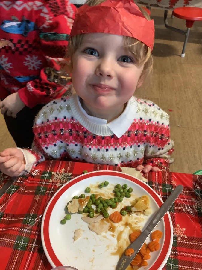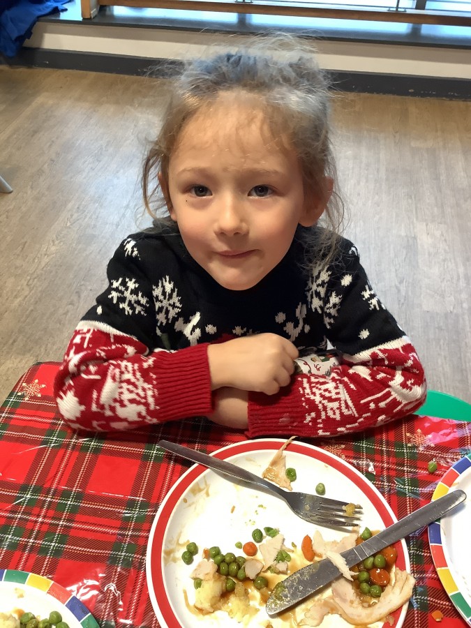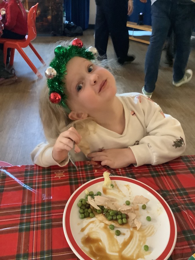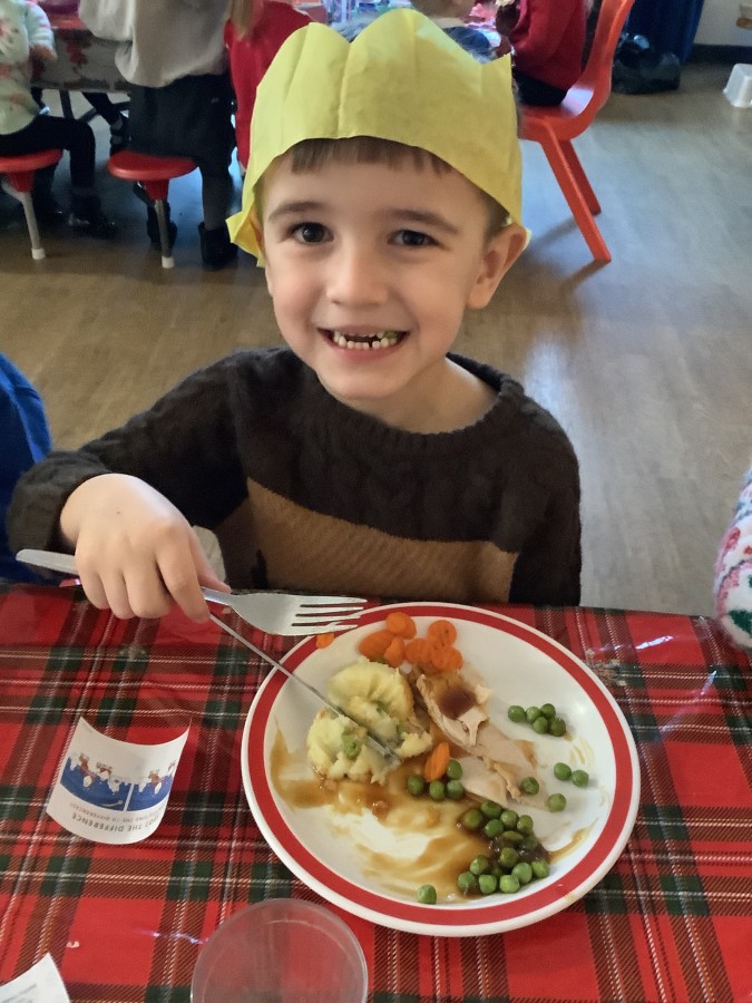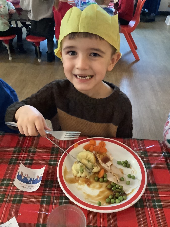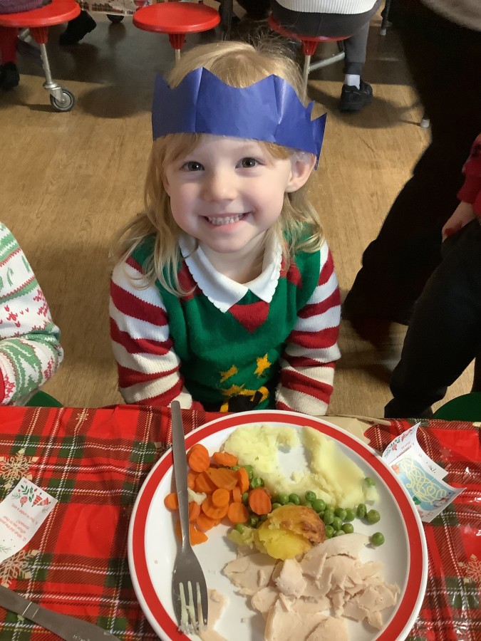 Reception enjoyed their Christmas lunch, pulling crackers, singing to festive music and wearing their Christmas jumpers!