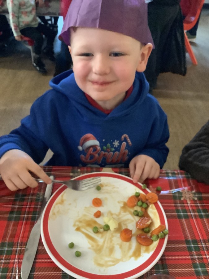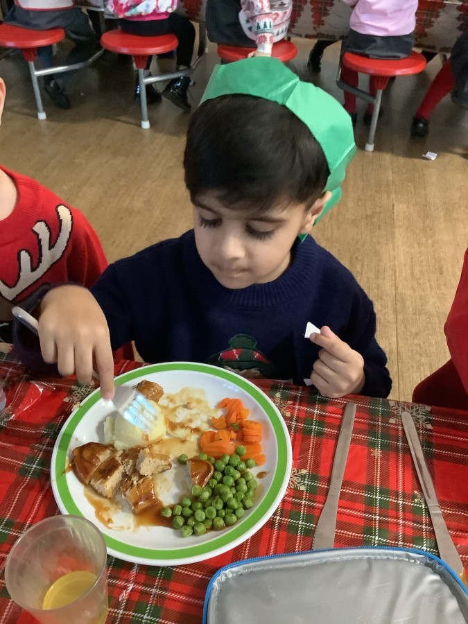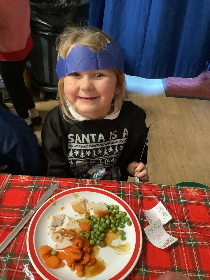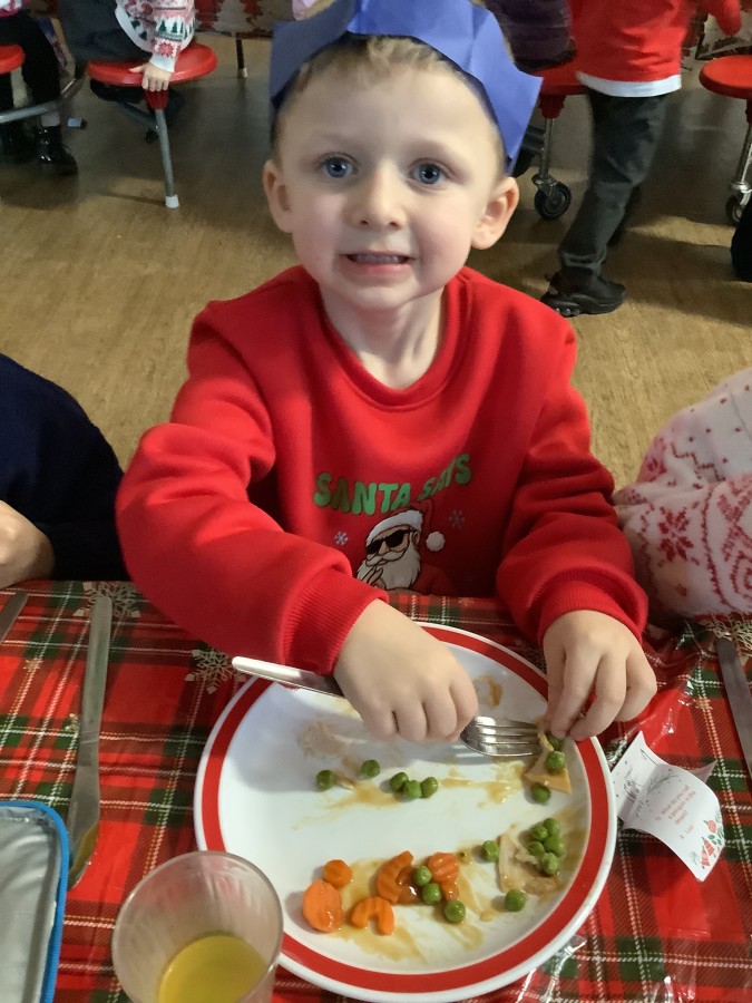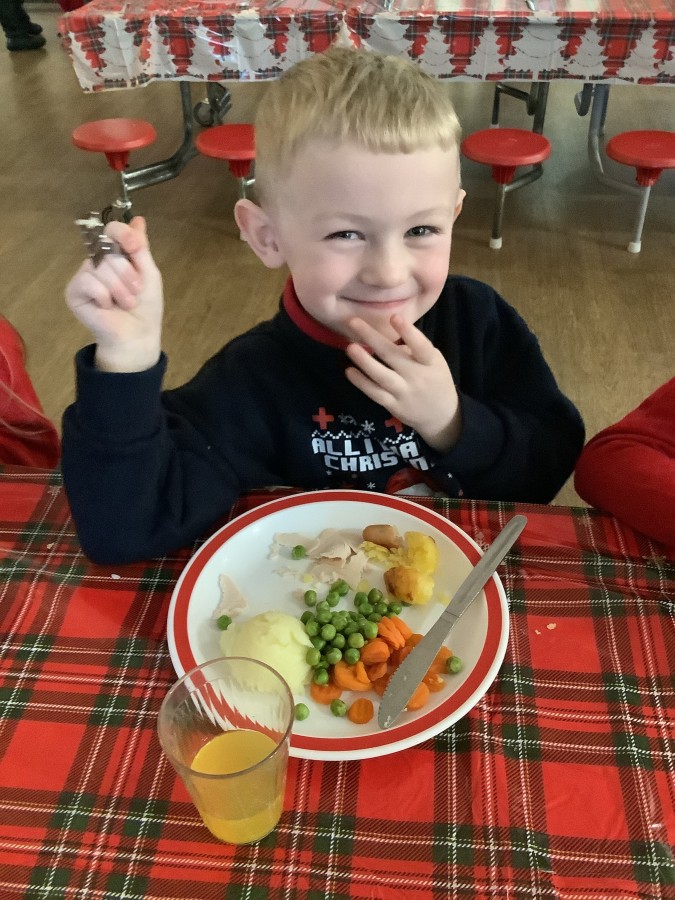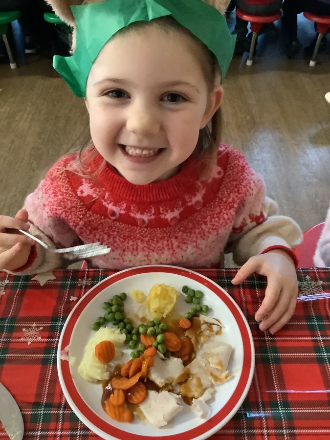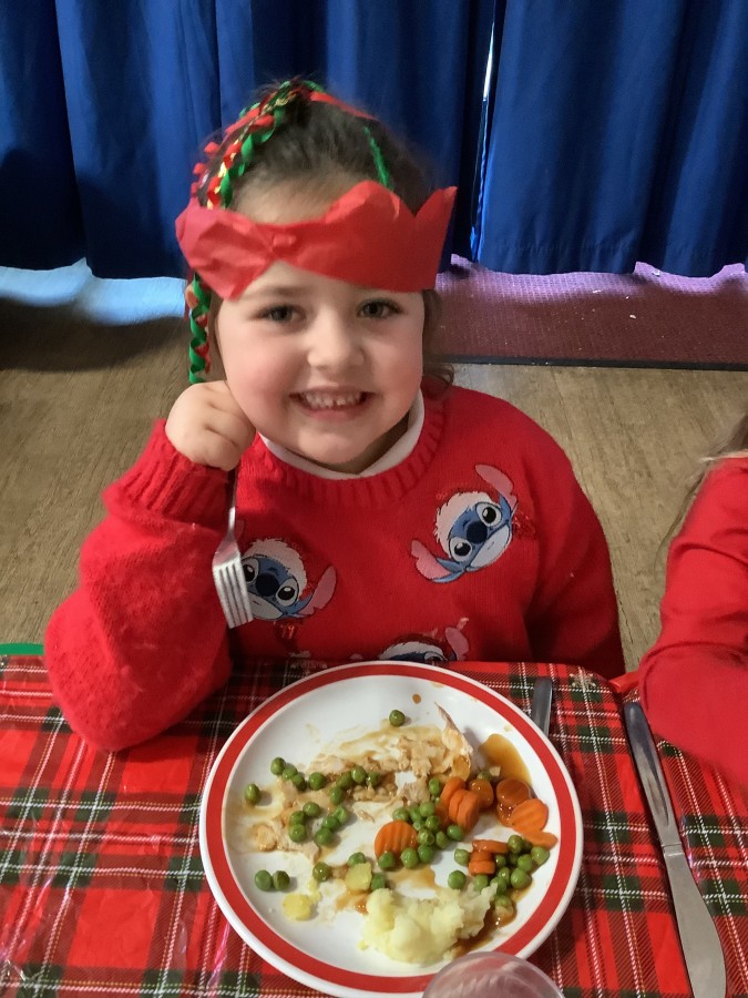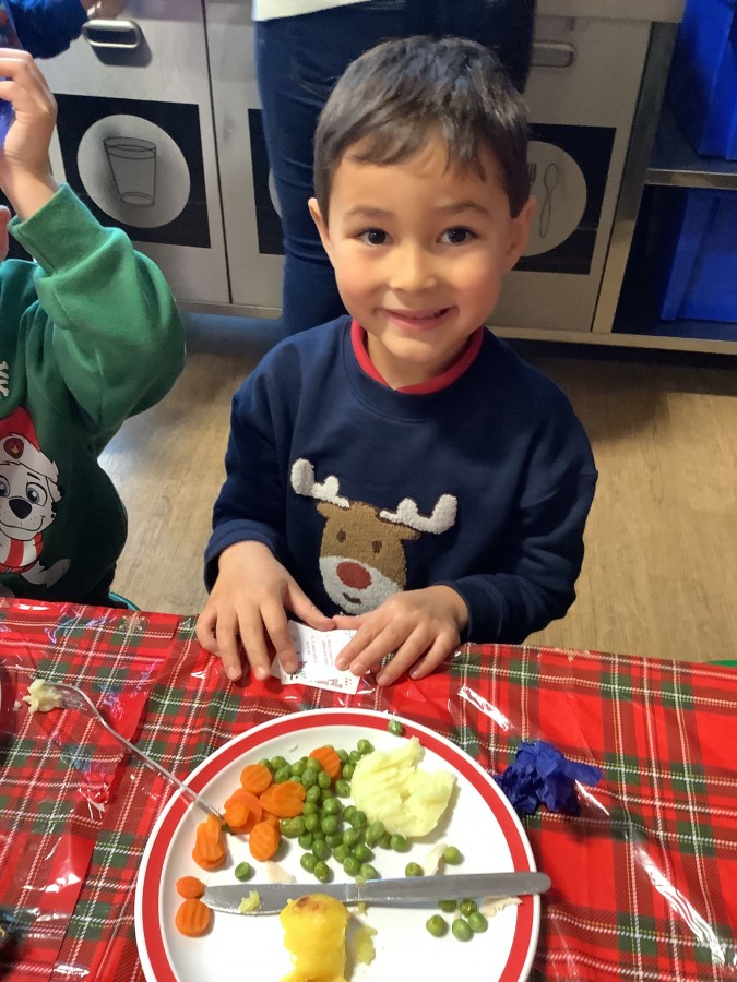 Reception enjoyed their Christmas lunch, pulling crackers, singing to festive music and wearing their Christmas jumpers!