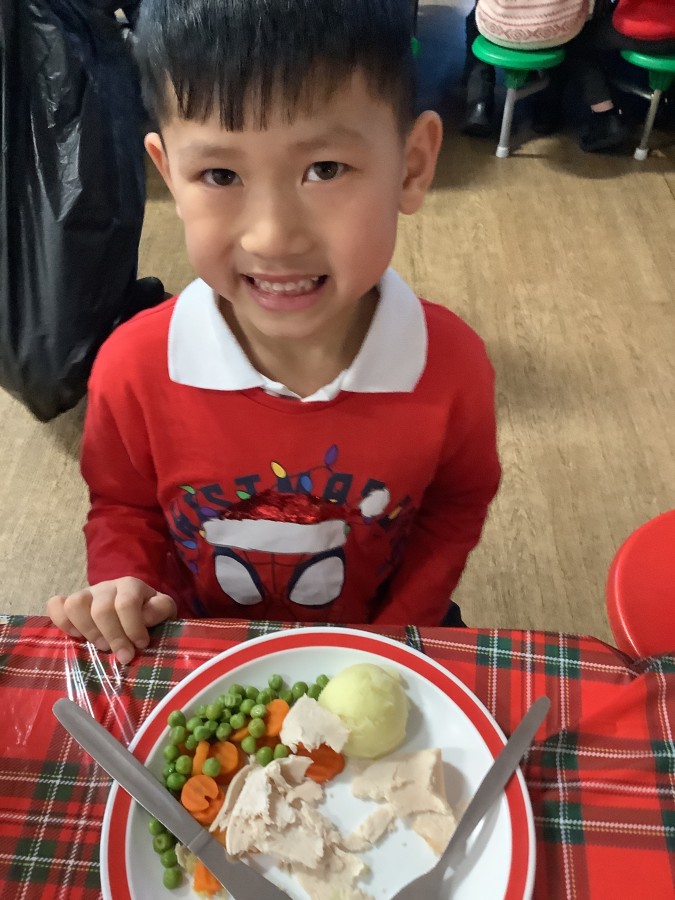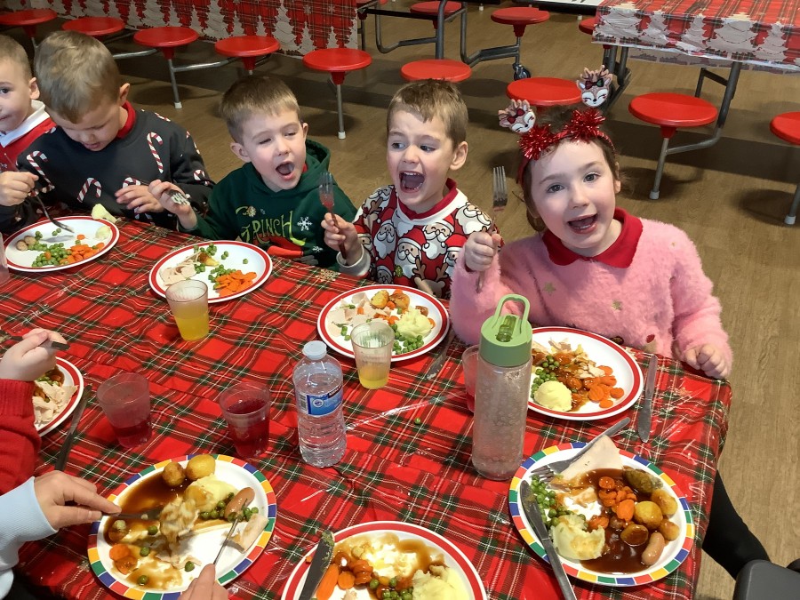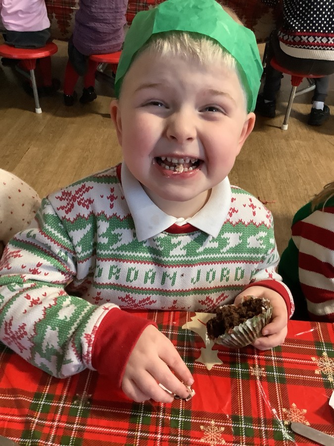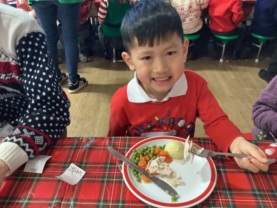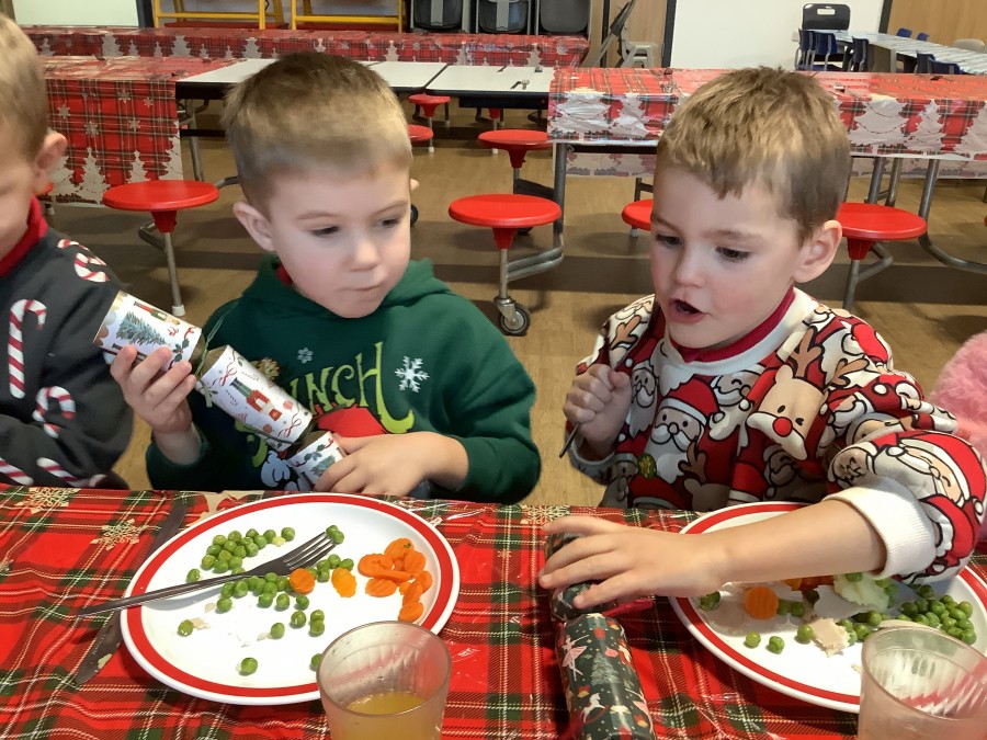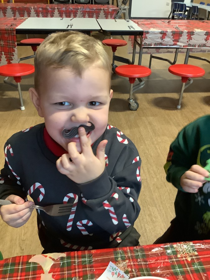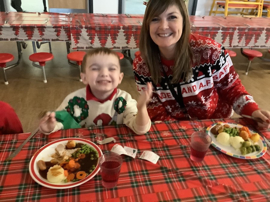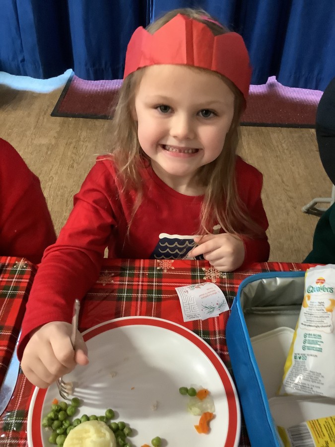 Reception enjoyed their Christmas lunch, pulling crackers, singing to festive music and wearing their Christmas jumpers!