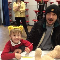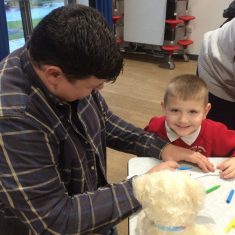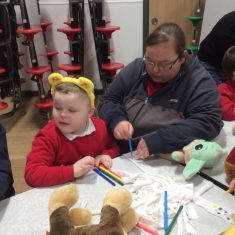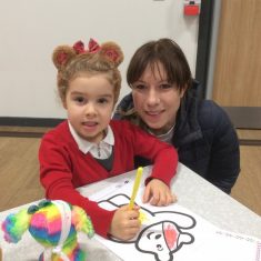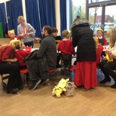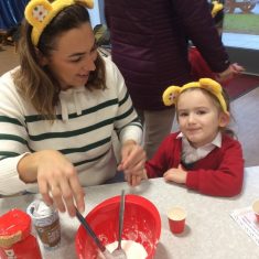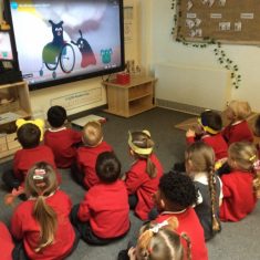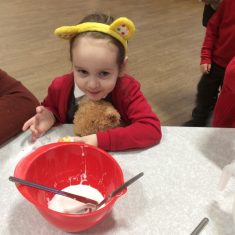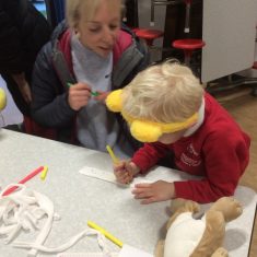 Reception had a great time this morning at our ‘Parent sharing workshop’.  As it was also ‘Children in Need’ our workshop was based around this.  We had lots of fun making Pudsey biscuits, headbands, made a eye patch for our own teddies, did Pudsey colouring and danced along with Pudsey.  We finished off our morning singing nursery rhymes that we had learnt this week as part of ‘Nursery Rhyme Week’.