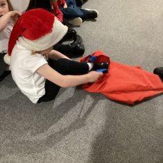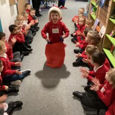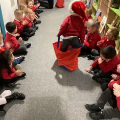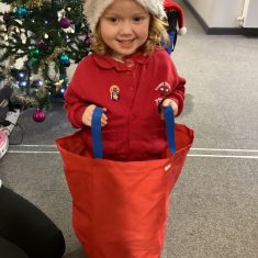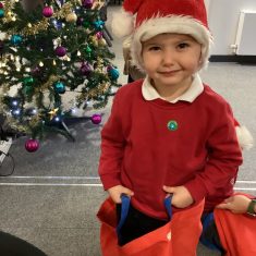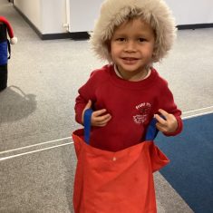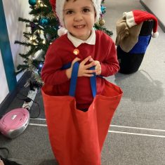 Nursery loved taking part in the Santa sack race this morning! We listened to Christmas music and all wore Santa hats. We cheered our friends on and all took turns in the Santa sacks!