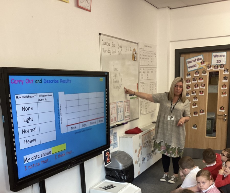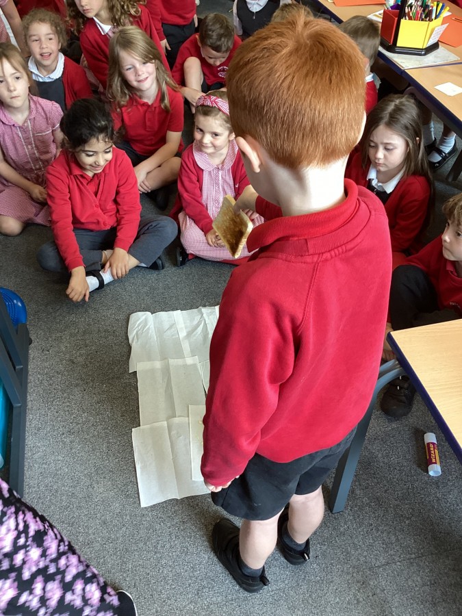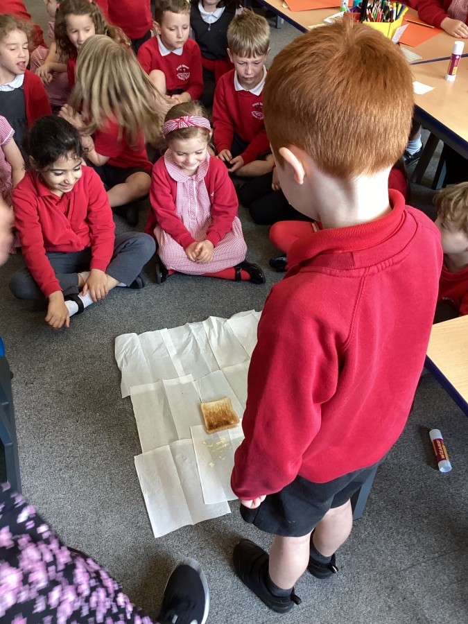 During our  transition days the new Year 2 children took part in our whole school science investigation to see if toast always falls butter side down.