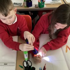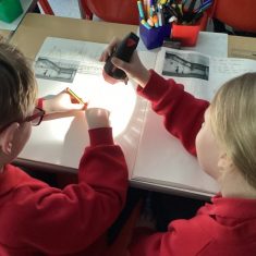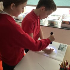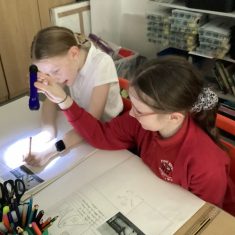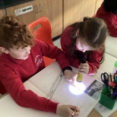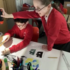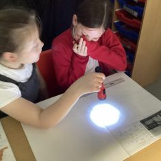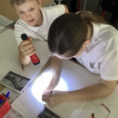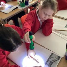 Year 5 have been looking at how artists like Banksy and Barbara Hepworth use light and dark in their work. We used torches to create our own ‘shadow art’.