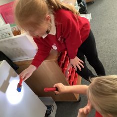 The children have enjoyed investigating how to make a shadow and then how to make it grow!!! The best bit was exploring their own shadows…thank you sunshine for coming out????