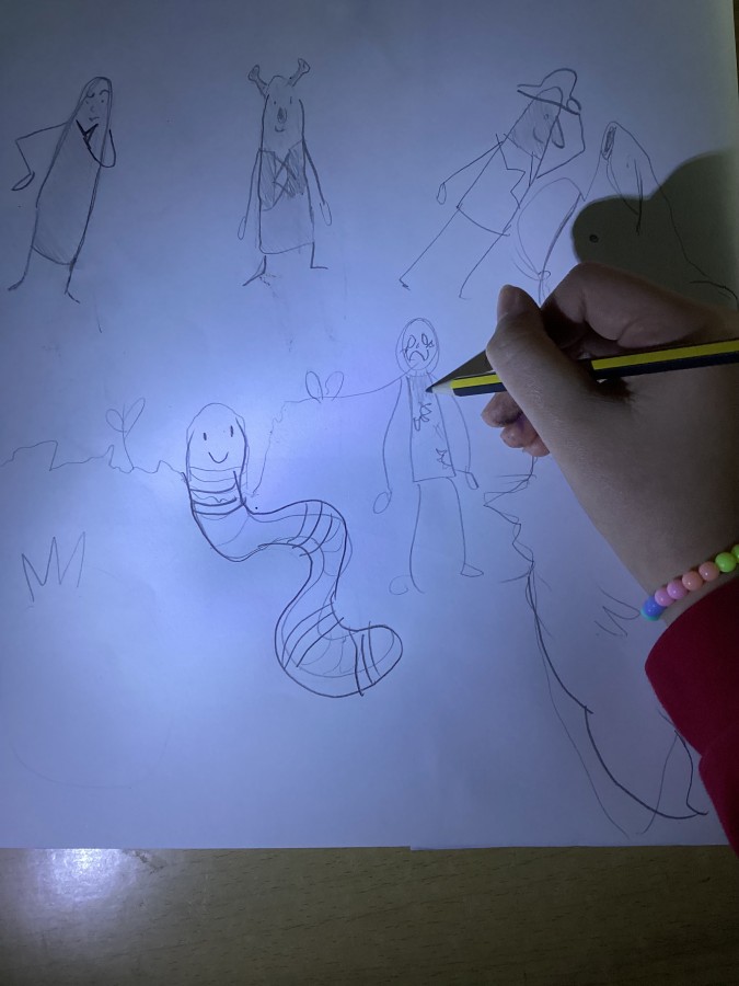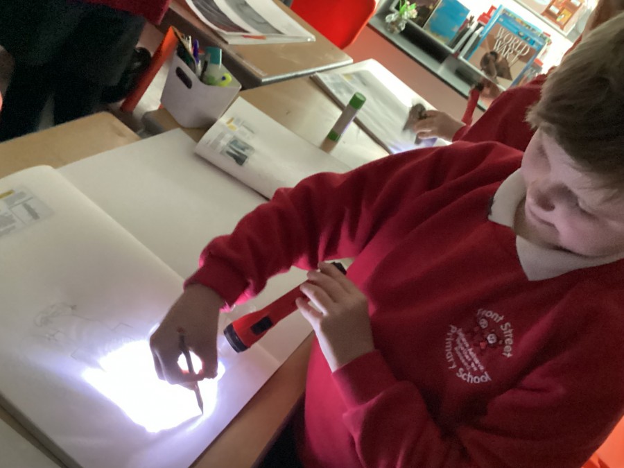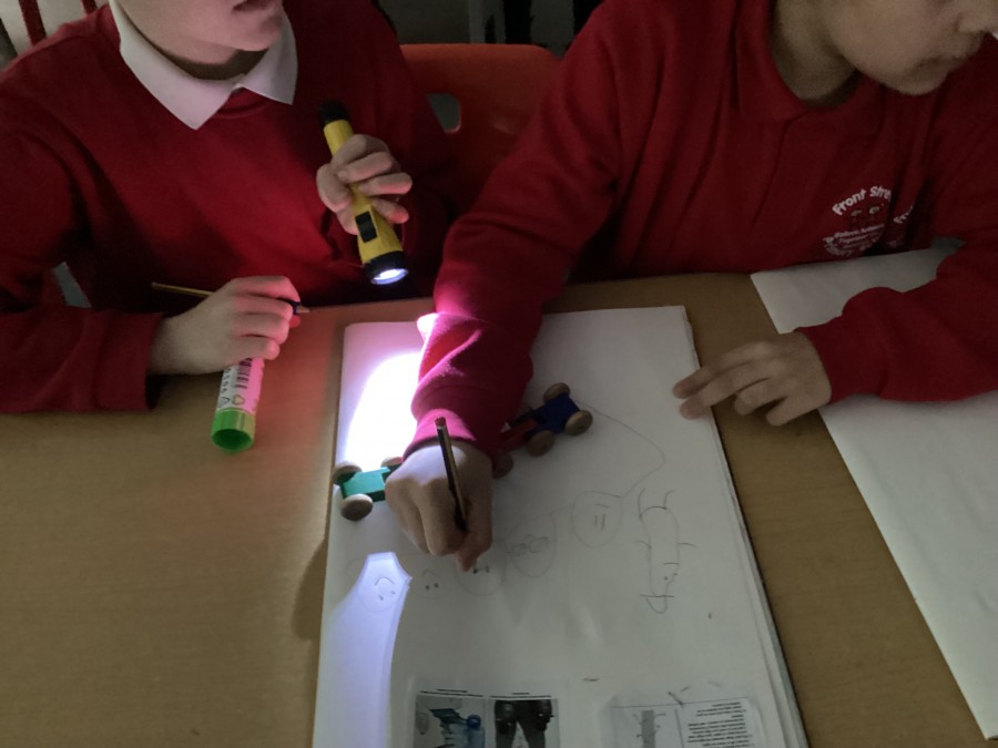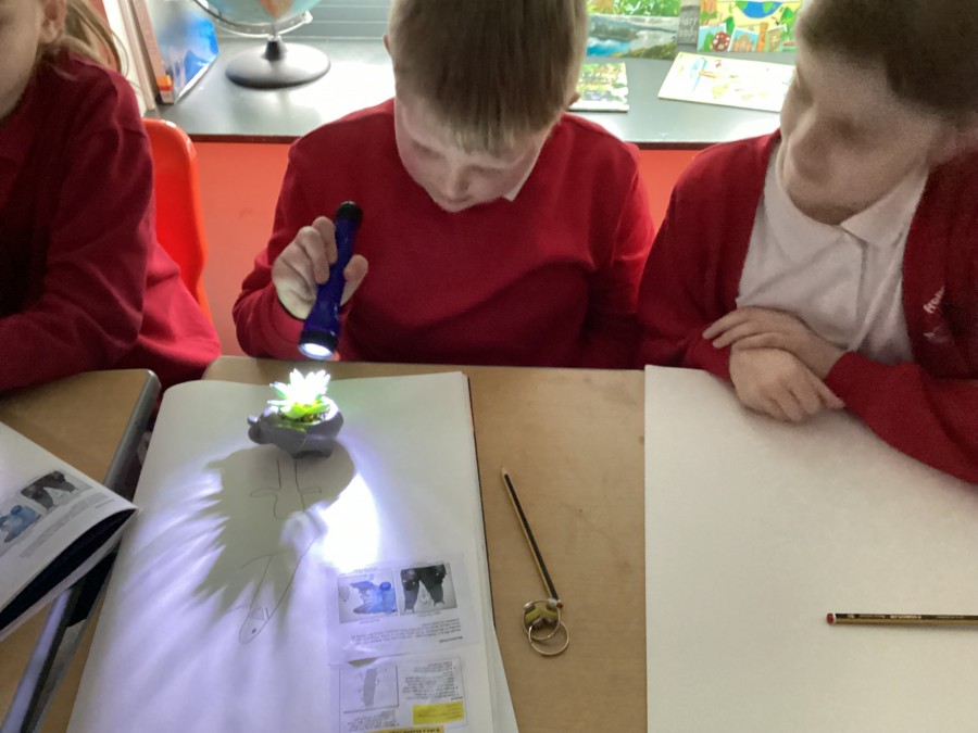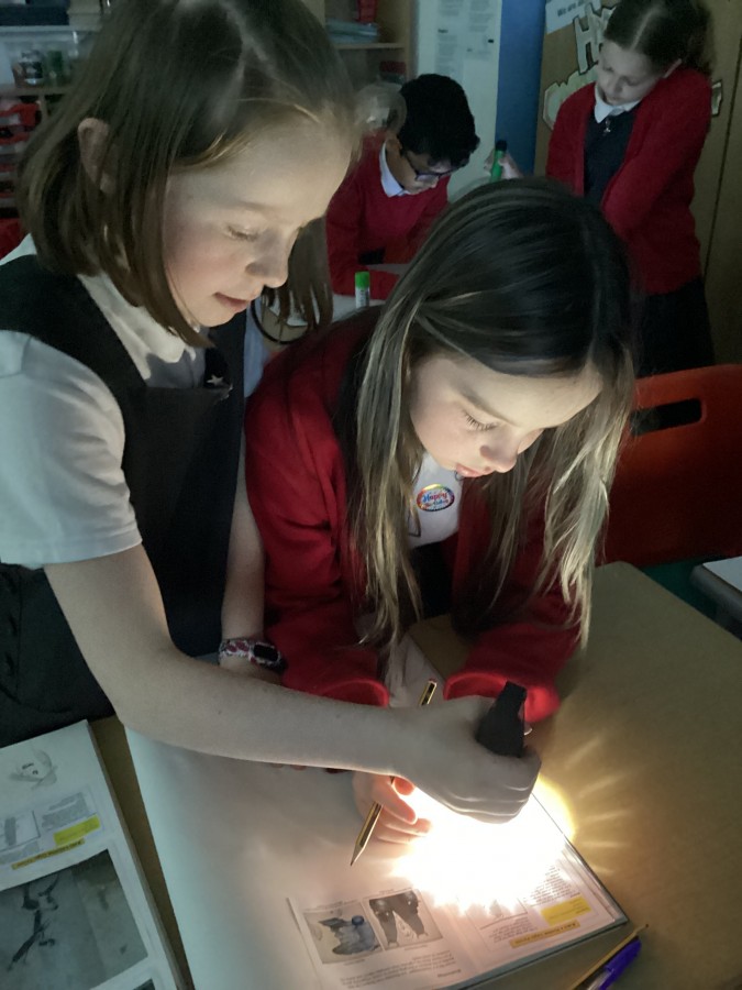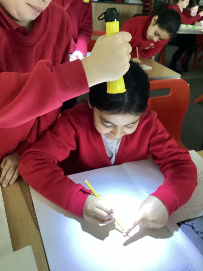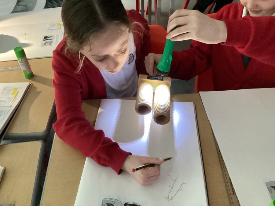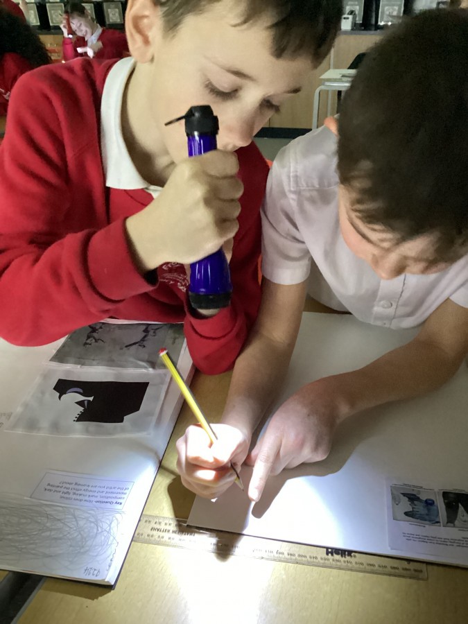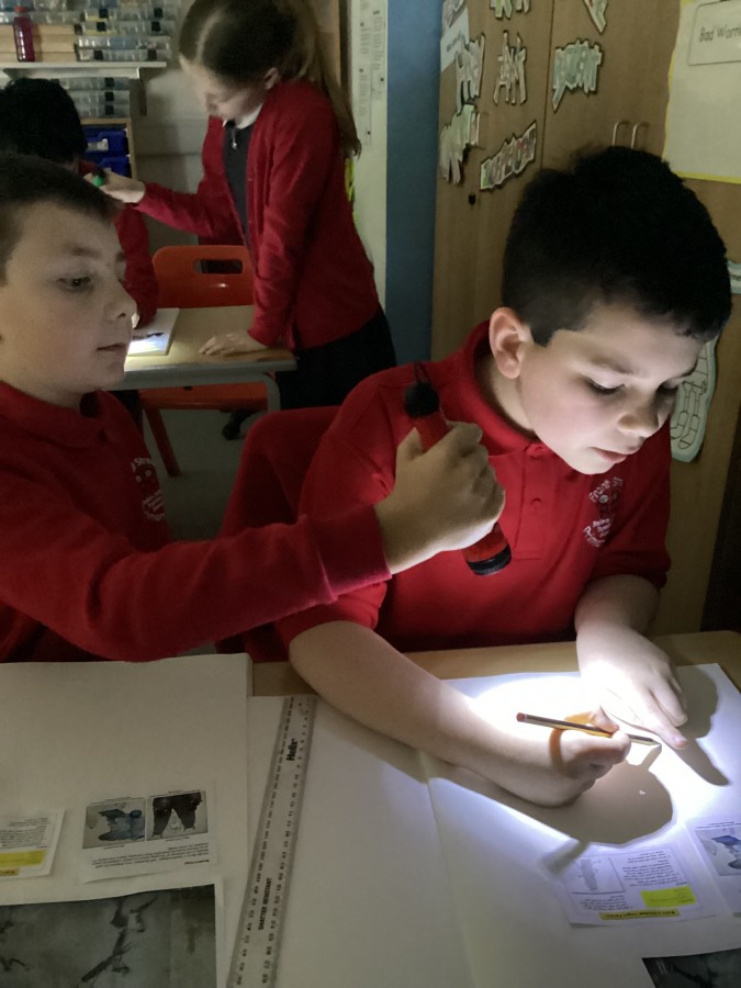 Year 5 have been exploring light and dark through the work of Vincent Bal. He adds doodles to the shadows of everyday objects to create imaginative pieces of art.