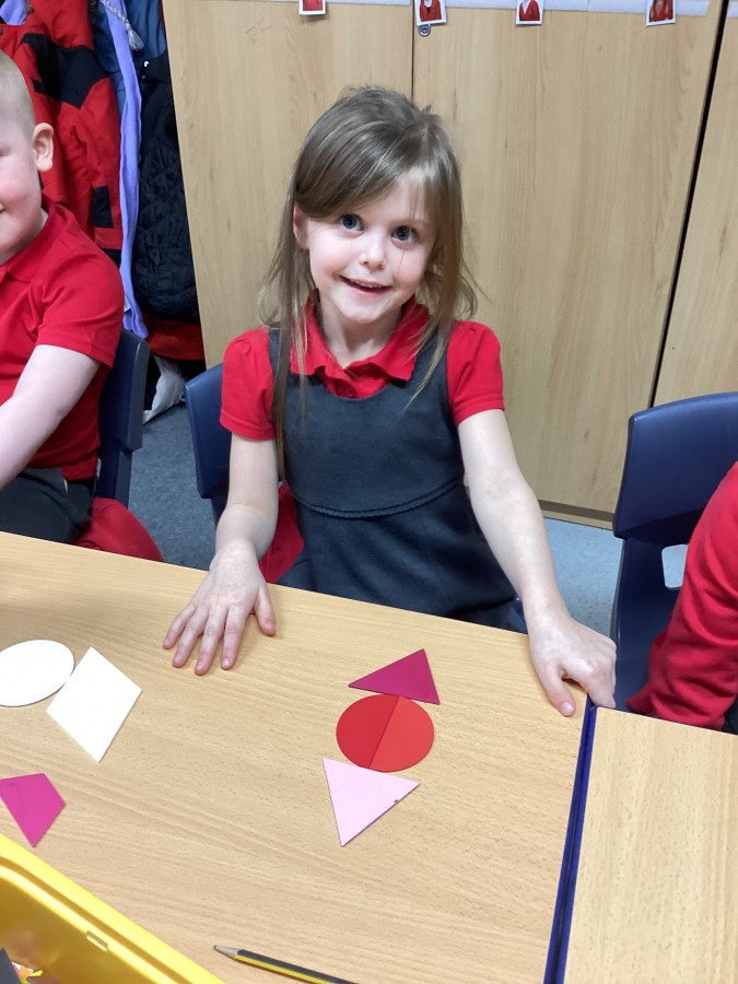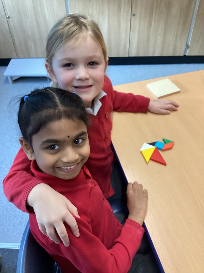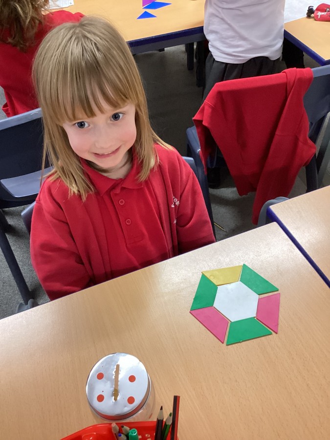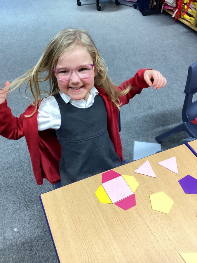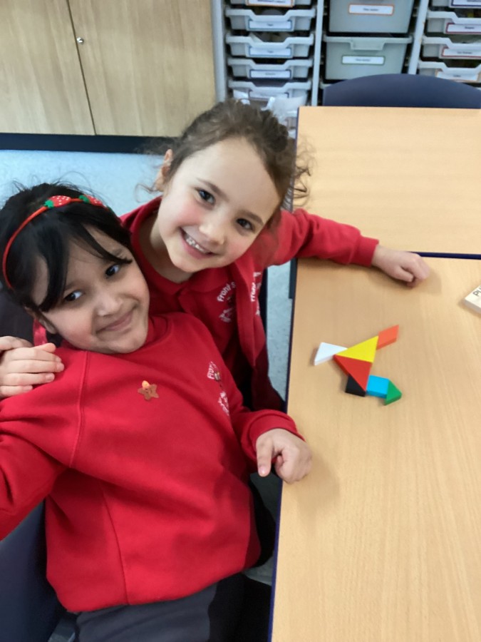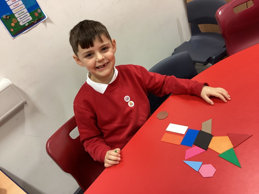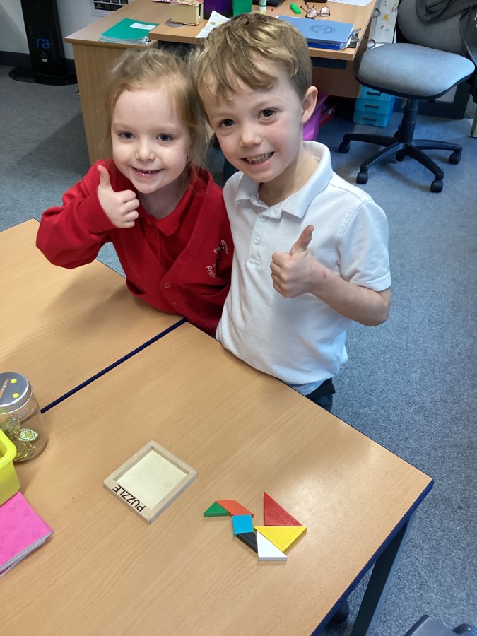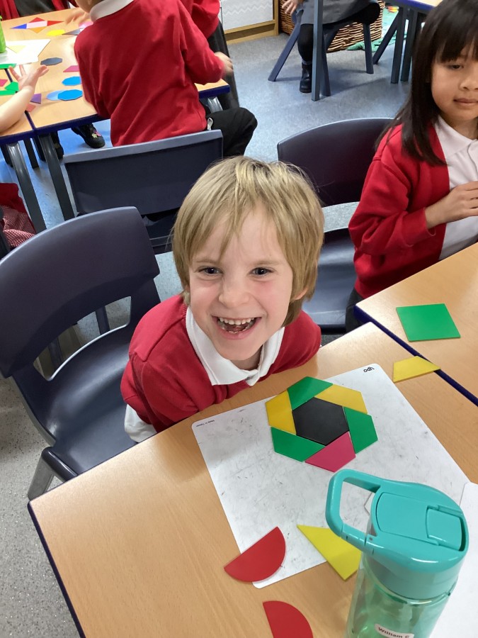 They composed images using 2D shapes, extended and described patterns and used tangrams to make their own pictures of animals and objects they knew.