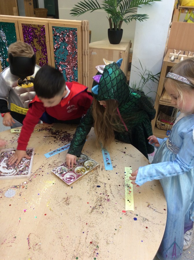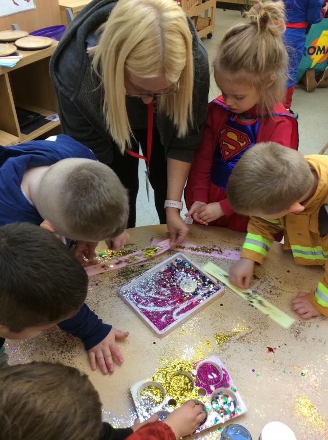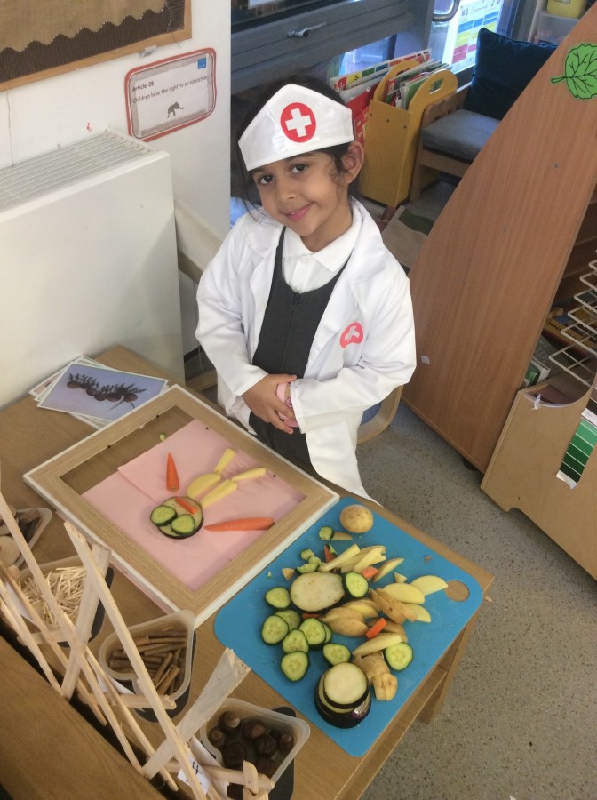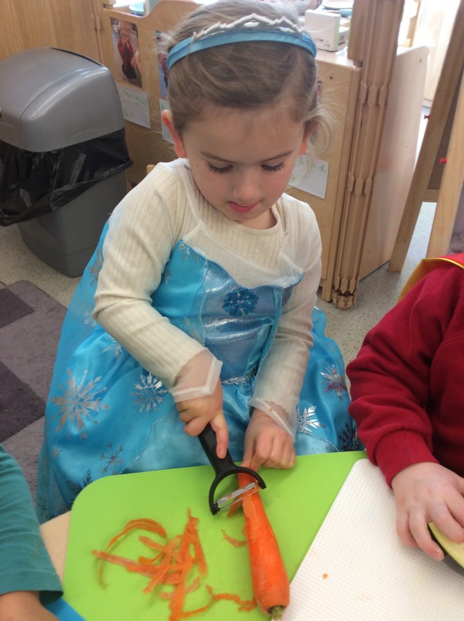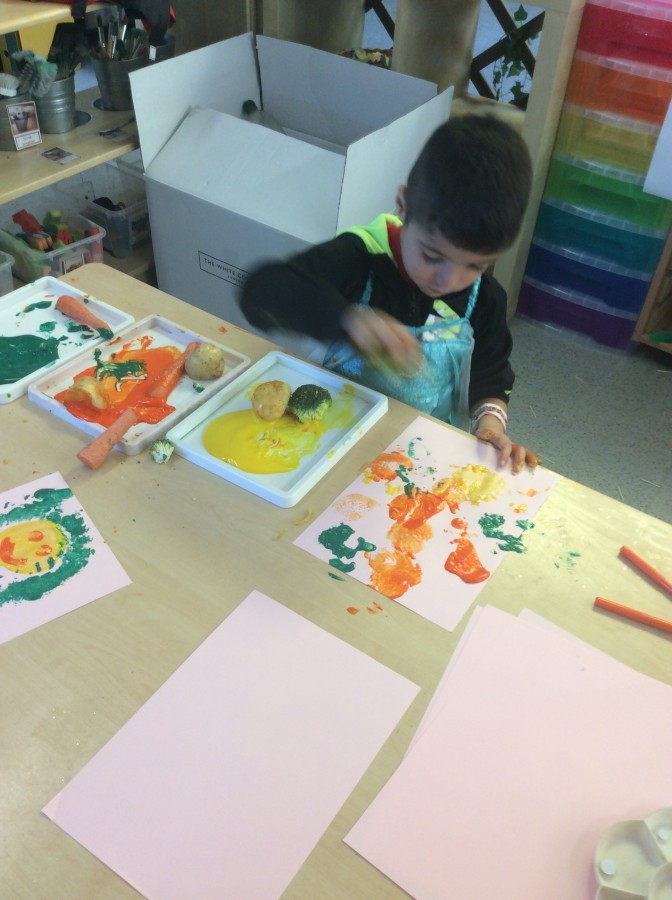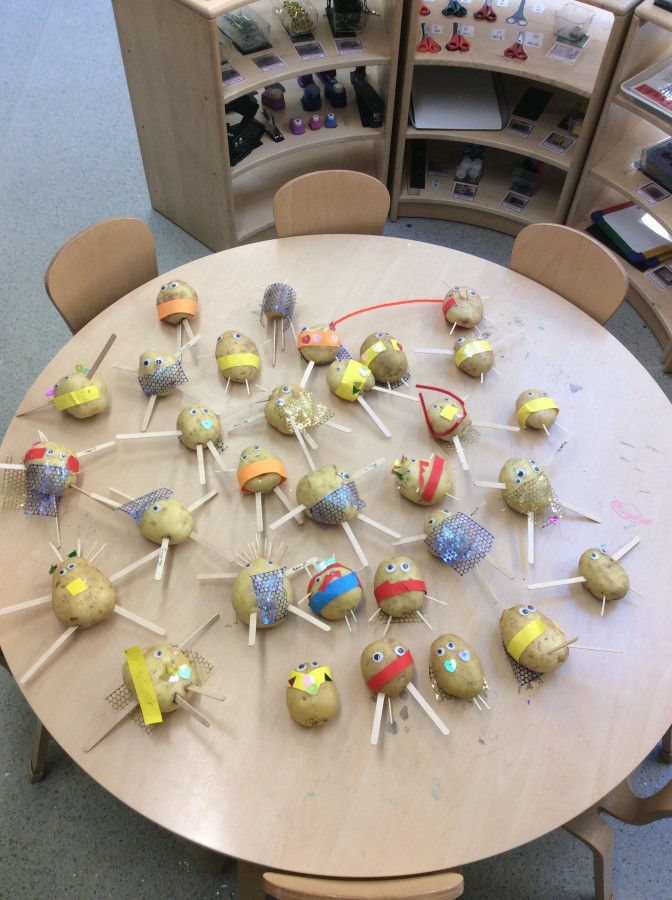 We started off our day with a superhero themed dough disco, we learnt a new sound- ‘h’ for hero, and listened to ‘Supertato’. Then we Took part in a carousel of activities. We made superhero wristbands, chopped up some vegetables (all from the Supertato book), played superhero stuck-in-the-mud, and even made our very own Supertato figures!