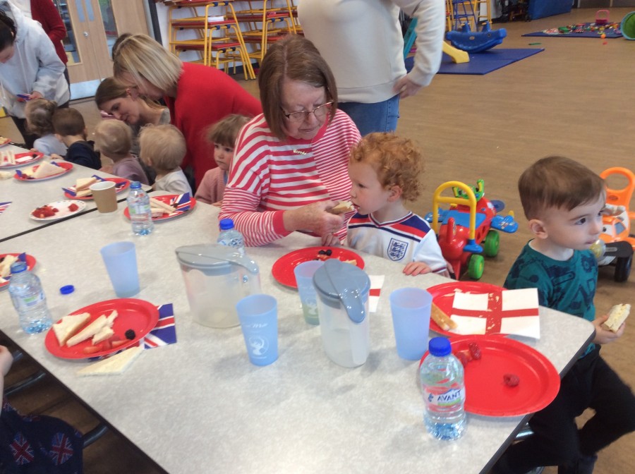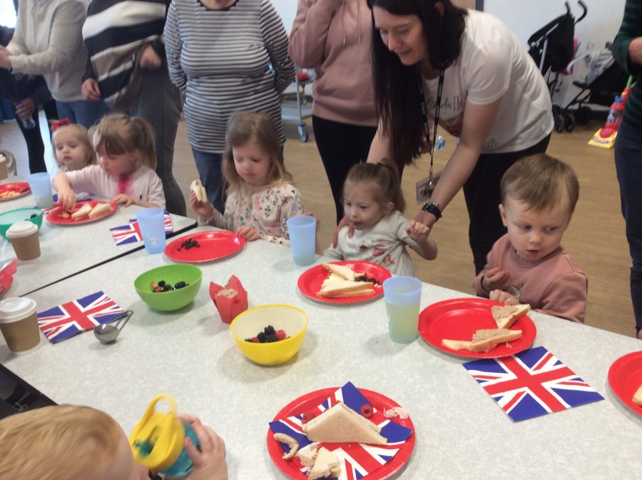 We had a great time celebrating the King’s Coronation at Toddlers. We decorated crowns, made flags and had a delicious tea party!