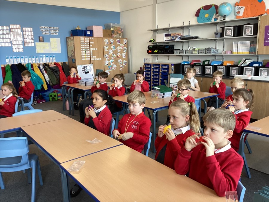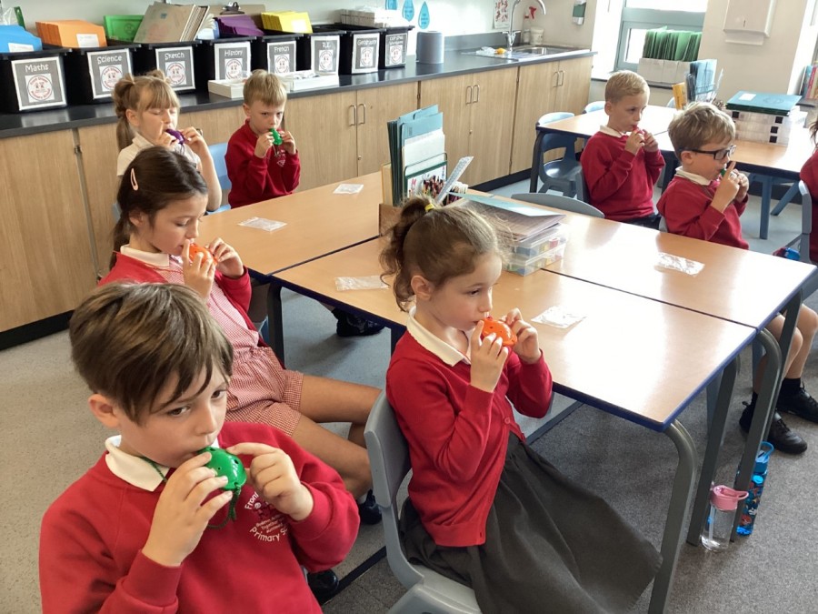 Today, we continued our ocarina lessons. We learned some new songs and played some songs from last year. We also focused our learning when listening to a song, guessed which animal it sounded most like and explained why. Our new music teacher, Miss McDonald was very impressed with our skills so far and we are excited to learn more this year.