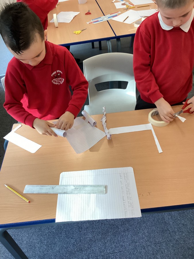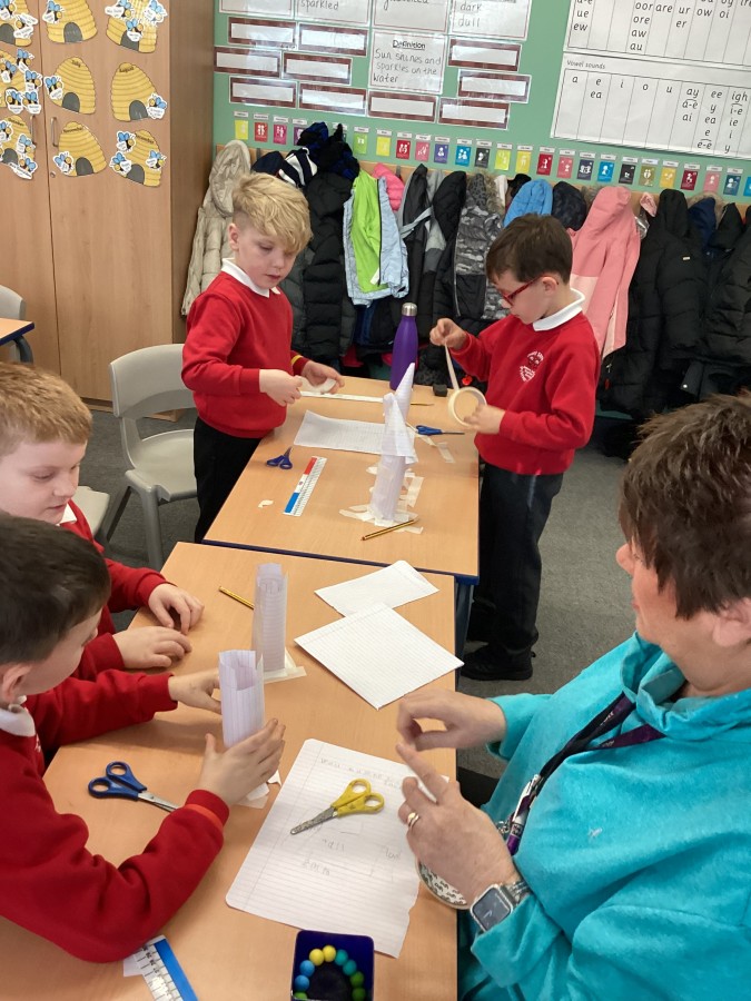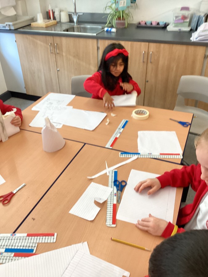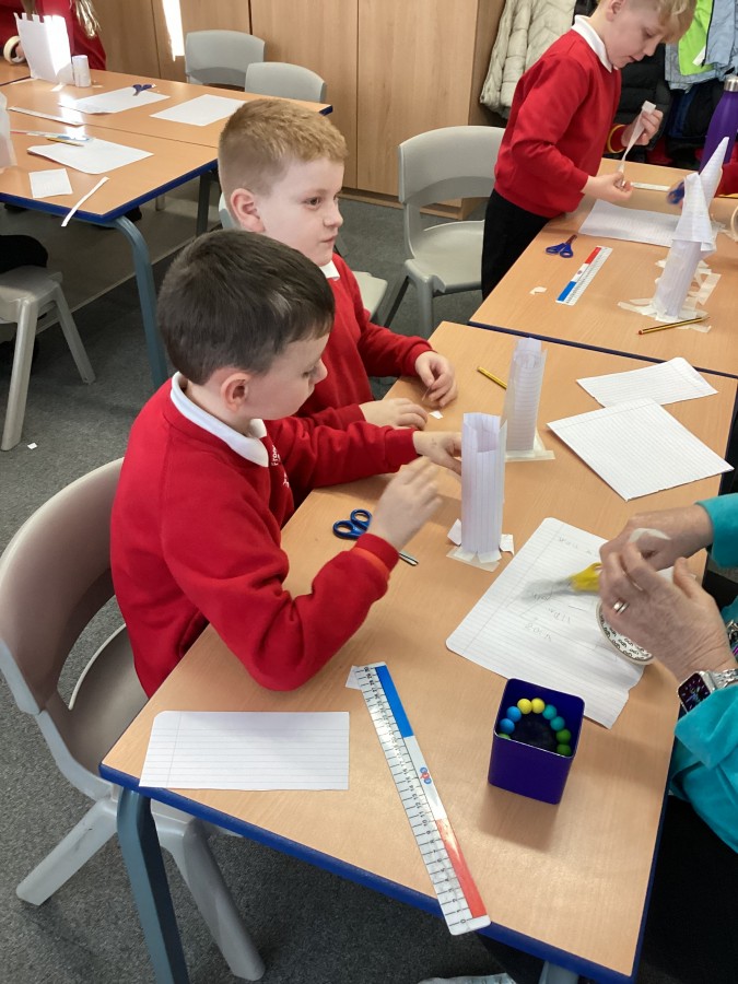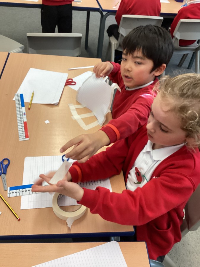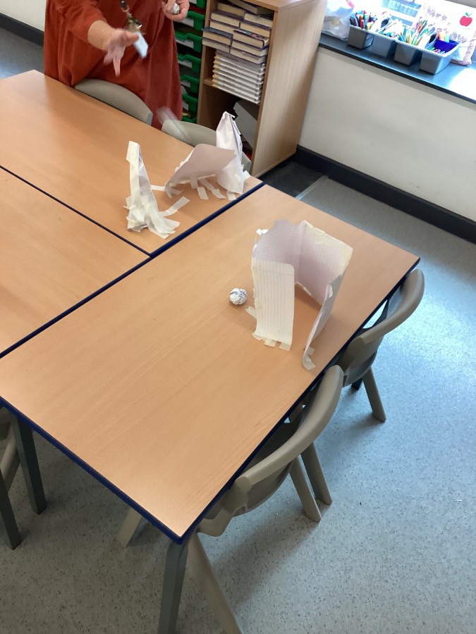 Did you know you can change the shape of a material? We made towers and turrets using only three pieces of paper! The tower had to be a certain size and we tried to make it sturdy, paper balls were used to try and knock it down.