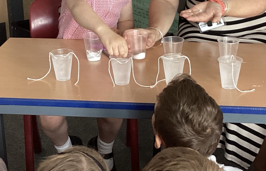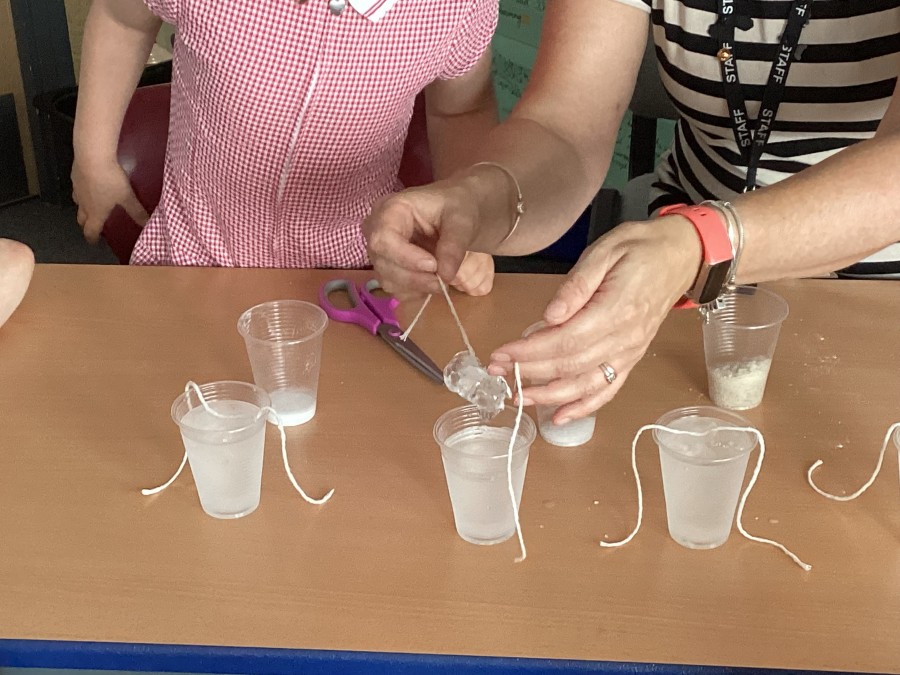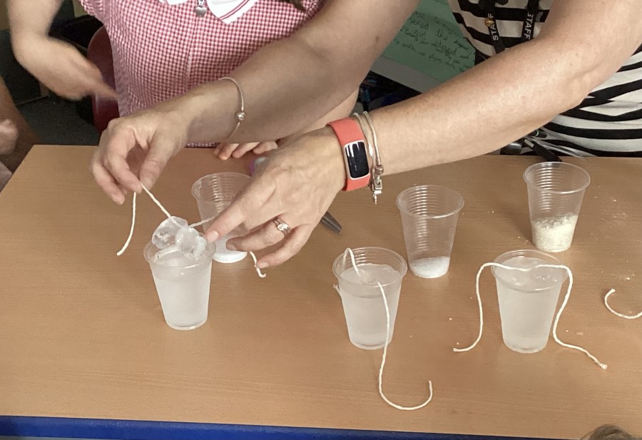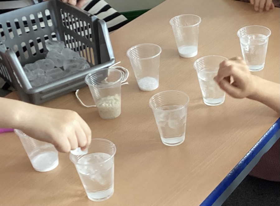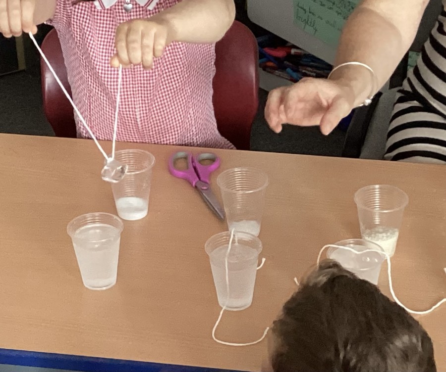 Our year 2 children really enjoyed their transition days. The whole school investigation they participated in made us all wonder which type of salt is best to pick up an ice cube with a piece of string?