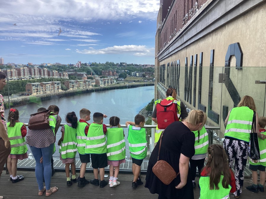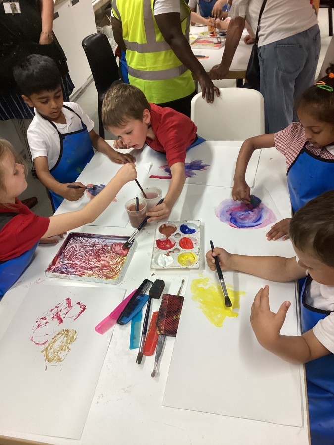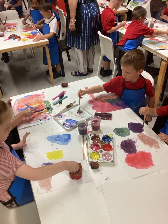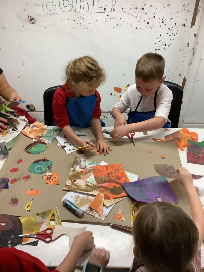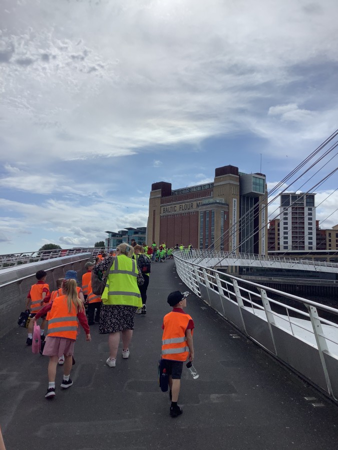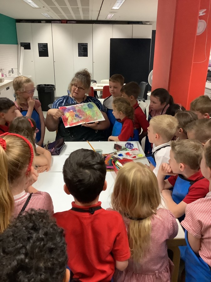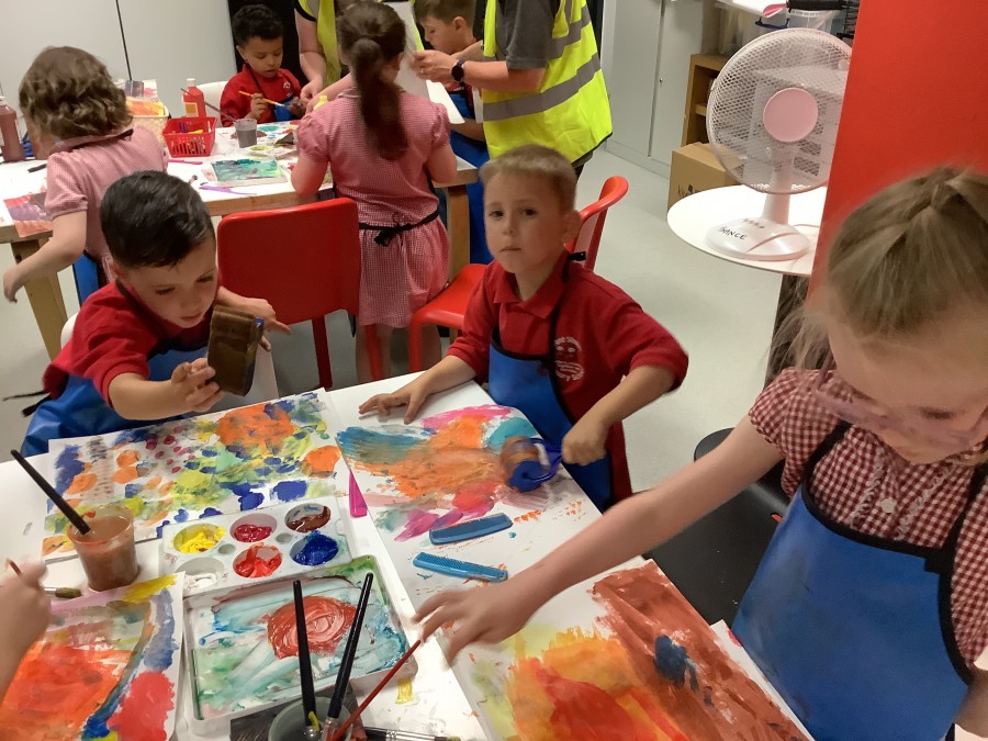 - On Thursday (12th July), Year 1 travelled to The Baltic to look at some amazing art work! They created their own masterpiece using a variety of different coloured paints; cutting up the painted paper to make a collage of fruit. We all had a lovely day! A huge thank you to all of our parent-helpers.