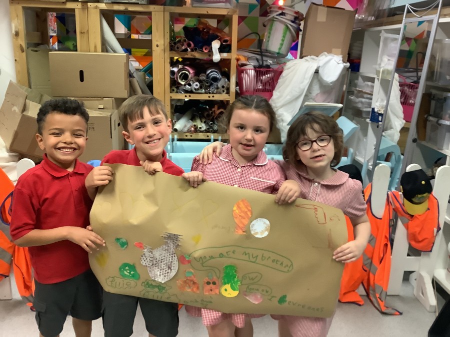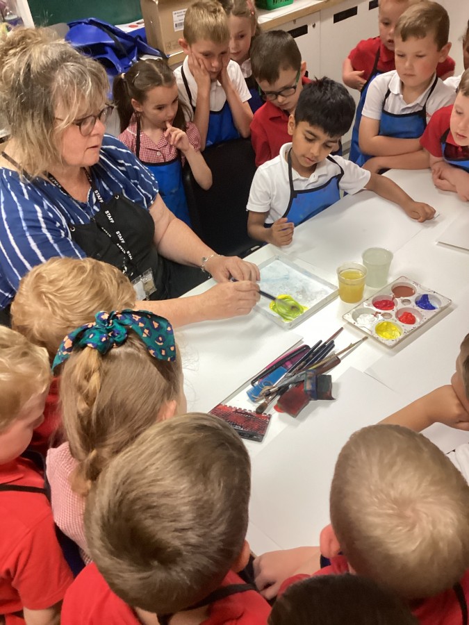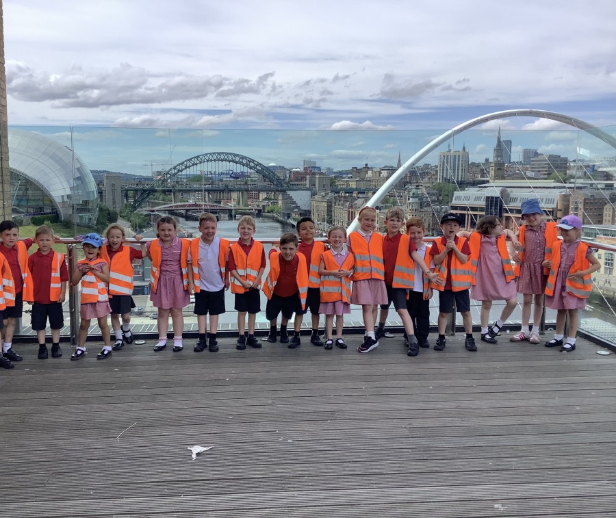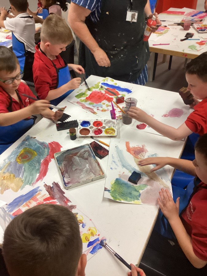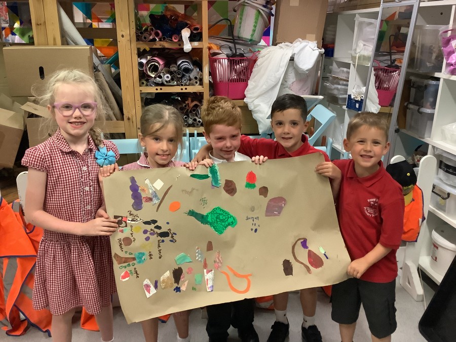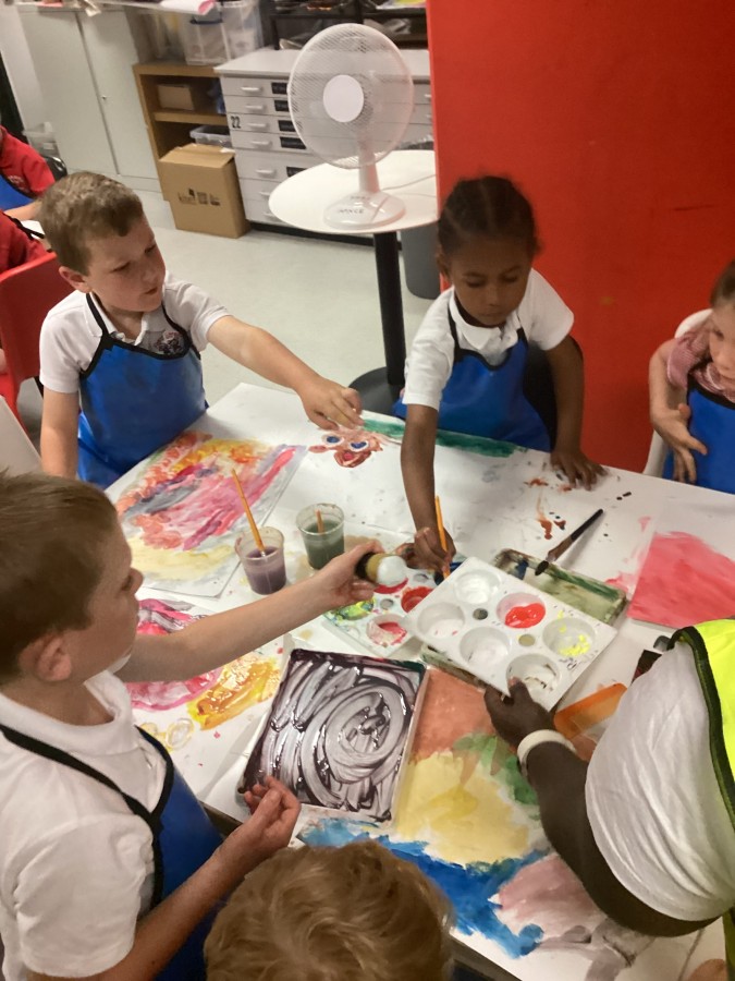 - On Thursday (12th July), Year 1 travelled to The Baltic to look at some amazing art work! They created their own masterpiece using a variety of different coloured paints; cutting up the painted paper to make a collage of fruit. We all had a lovely day! A huge thank you to all of our parent-helpers.