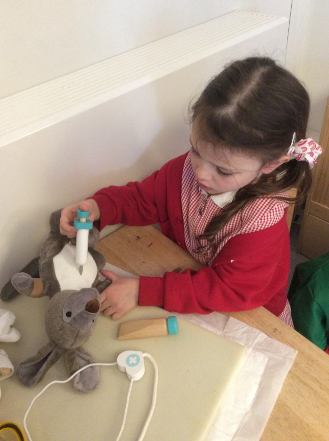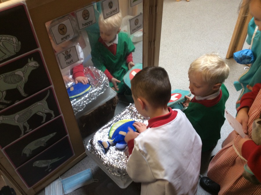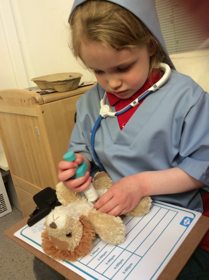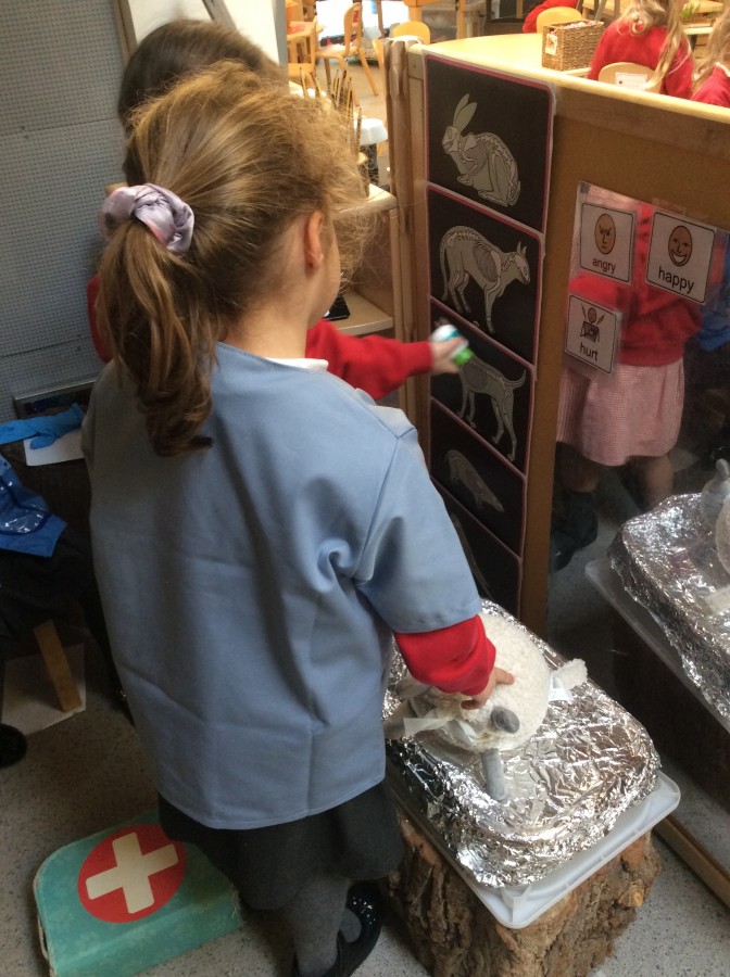 Reception have enjoyed being vets in our new ‘Vet Surgery’ role play area. This week they have been looking after poisonous sheep, kangaroos with twigs stuck in them, lions who have broken their bones and bears who have bumped themselves to name a few! We have been taking x rays and writing prescriptions for the animals too.