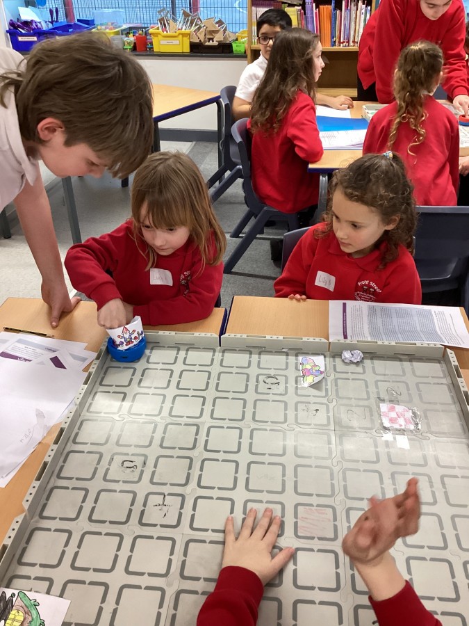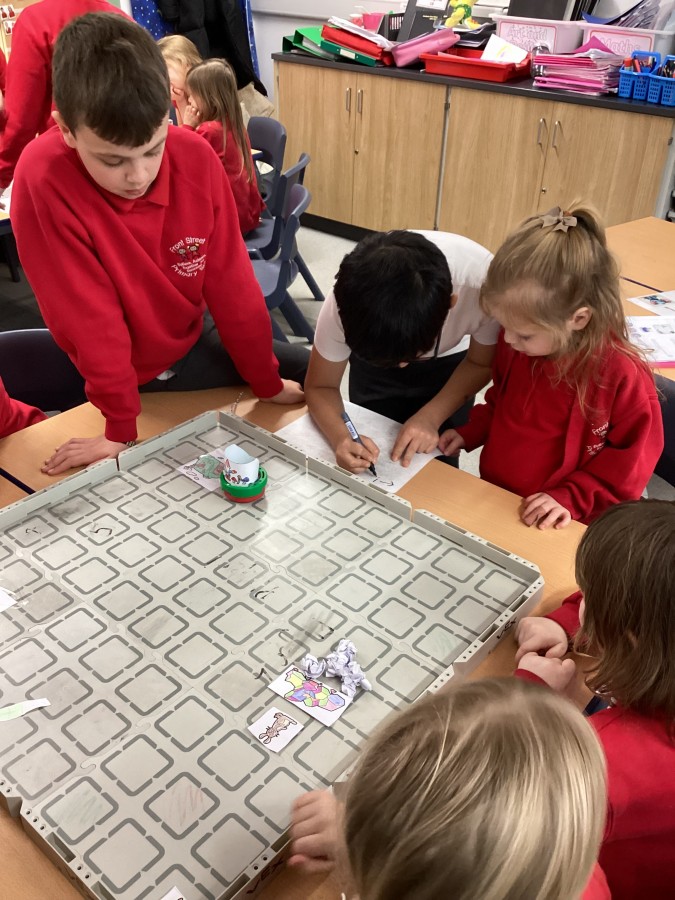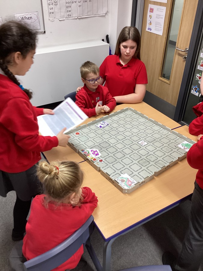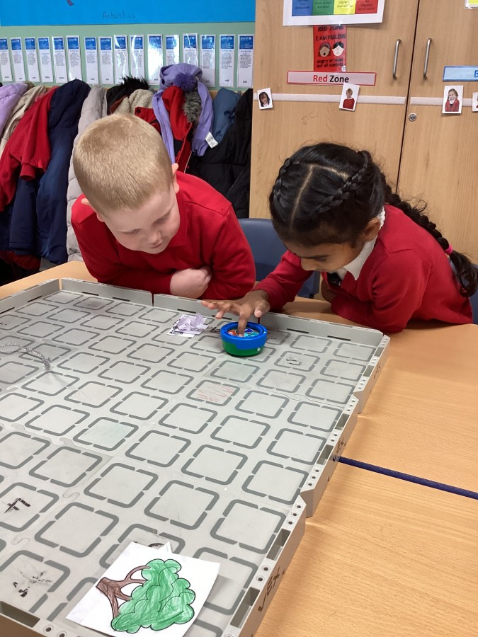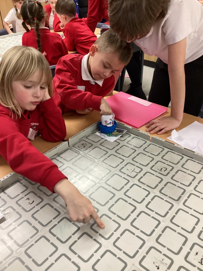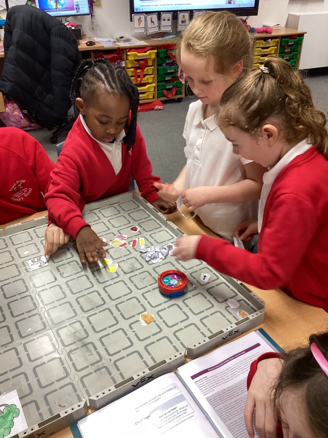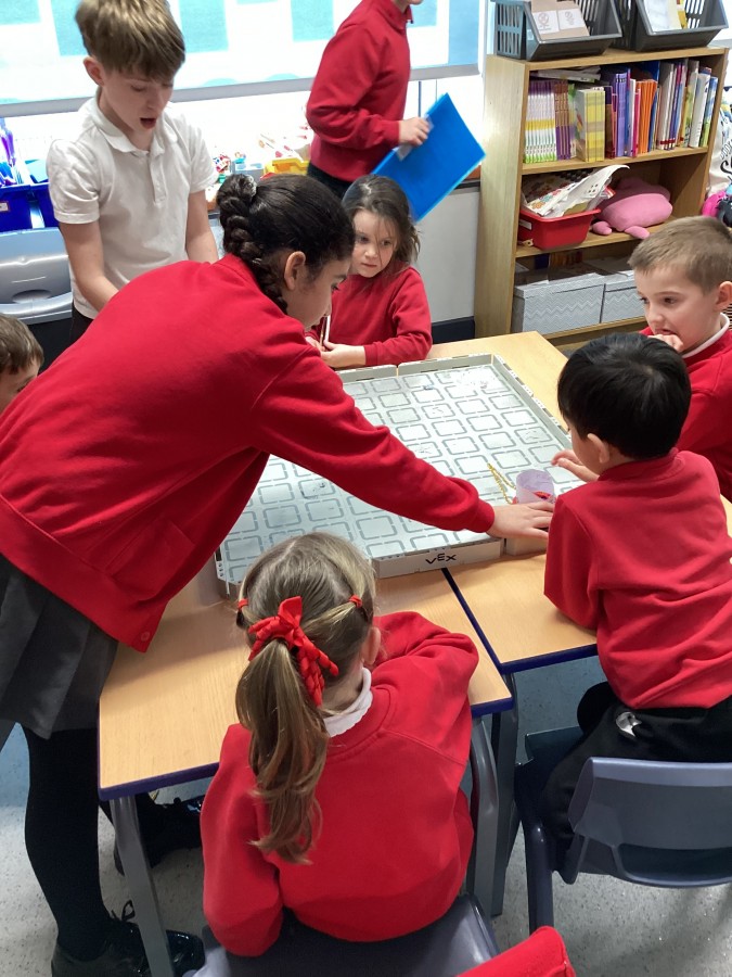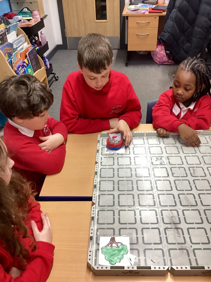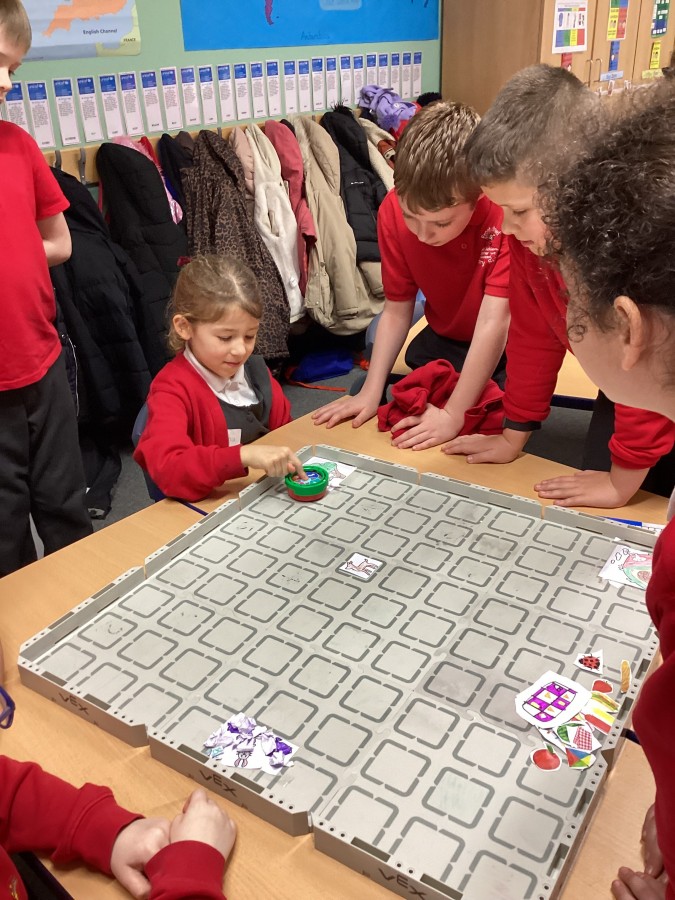 The children have been learning how to programme the Vex robot to move it to different positions.
