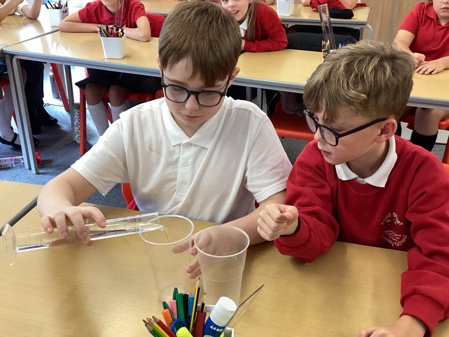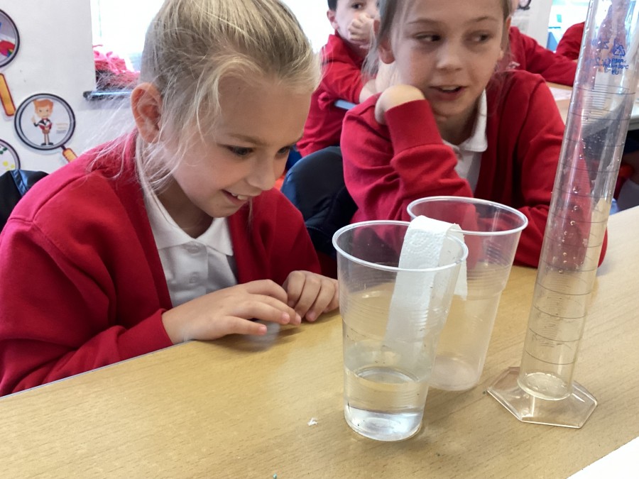 Last week, year 5  planned and carried out their whole school science investigation ‘which material is best to help water walk?’ We discussed the absorbency of different materials , how to conduct a fair test. We also collected data on a complex table and drew a line graph to show our results.
