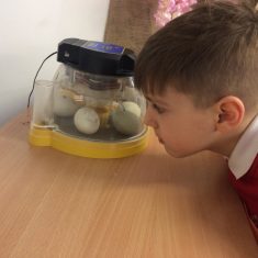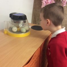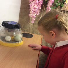 This week Reception have been lucky enough to observe some duck eggs hatch, and tried our best to answer the philosophical question ‘What came first, the duck or the egg?’