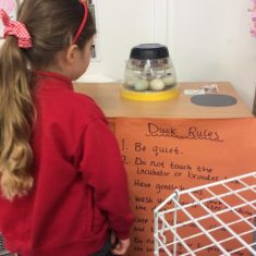 We learnt that the eggs need to be kept warm inside an incubator before the ducklings hatch, and that the ducks use something called an ‘egg tooth’ to peck their way out of their egg.