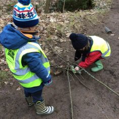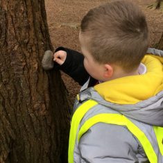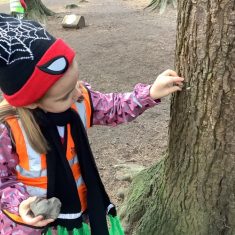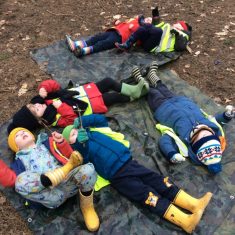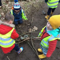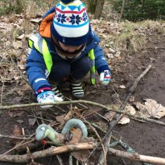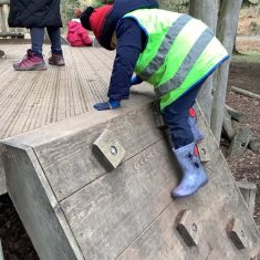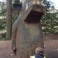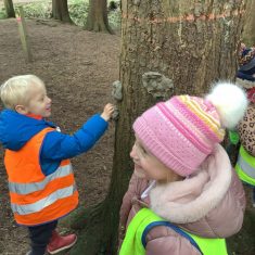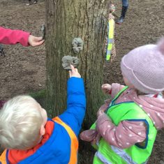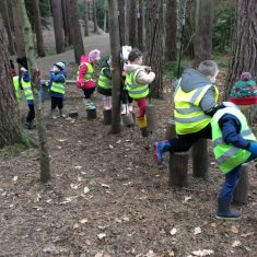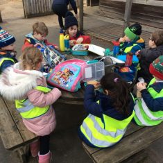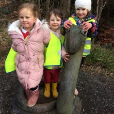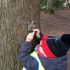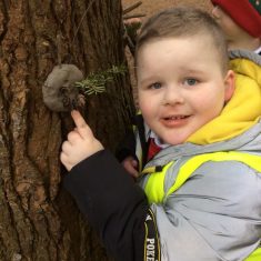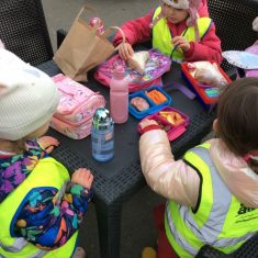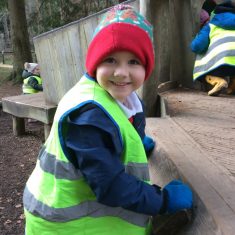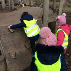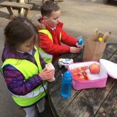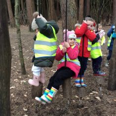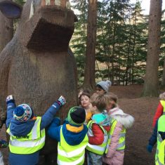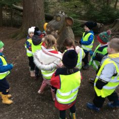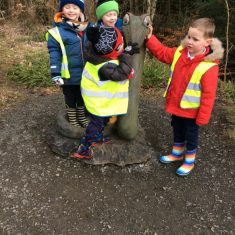 We all enjoyed going on the Gruffalo trail to find the Gruffalo and the characters from the story. We made houses out of natural resources for the fox, mouse, snake and the owl. We made stick men for the Gruffalo Child and we left dinner for the Gruffalo from items we found around the forest. We then made the Gruffalo out of clay for the trees. We also got to use our gross motor skills on the different play areas! We loved having our packed lunches outside in the fresh air.