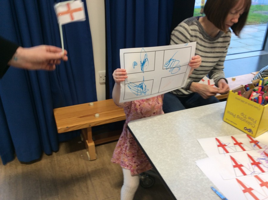 This week at Toddlers we did some football-themed activities to celebrate England’s first match in the World Cup. We played with the toys, our grown-ups, made our own flags and even tried a bit of football too!