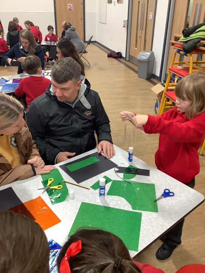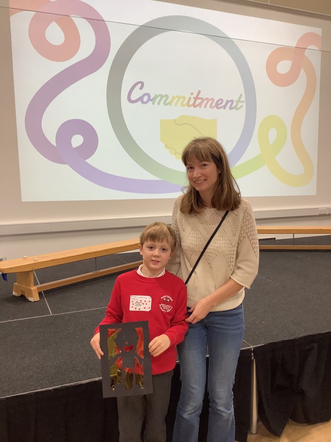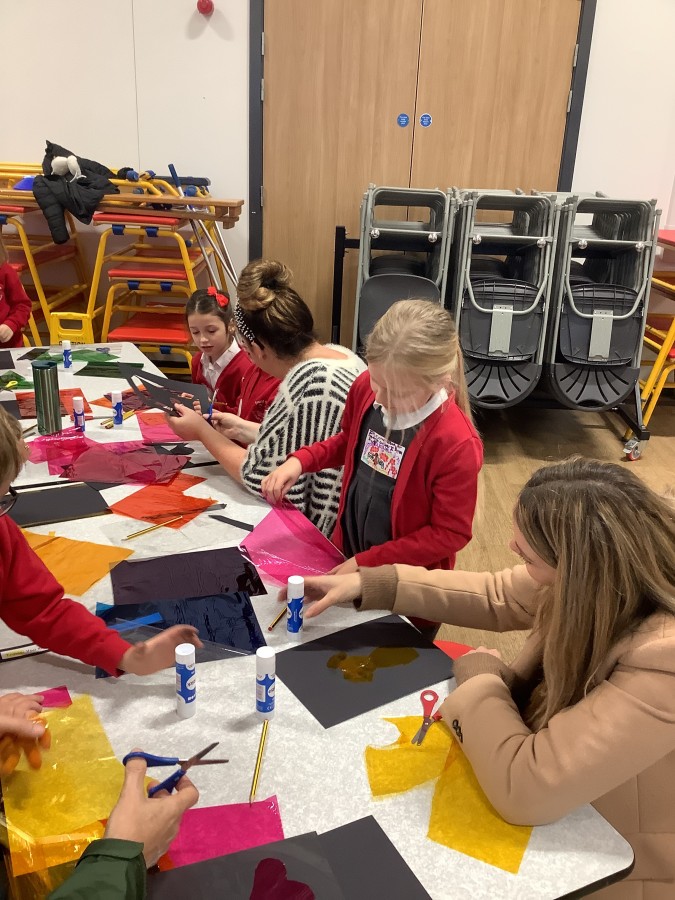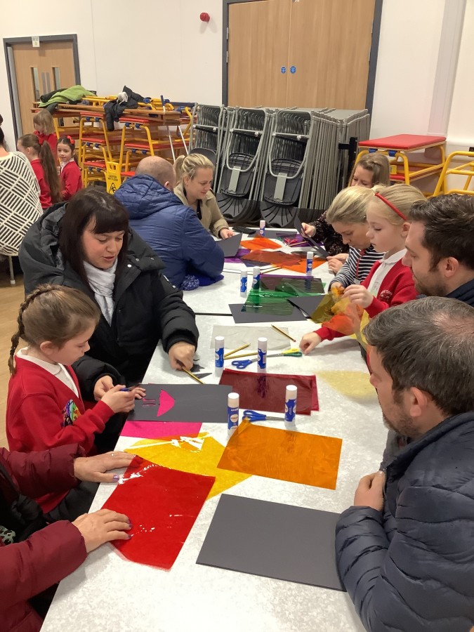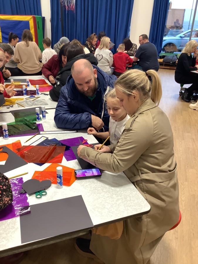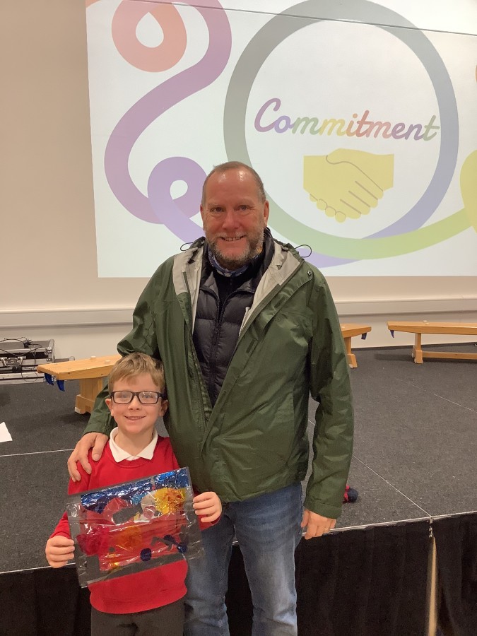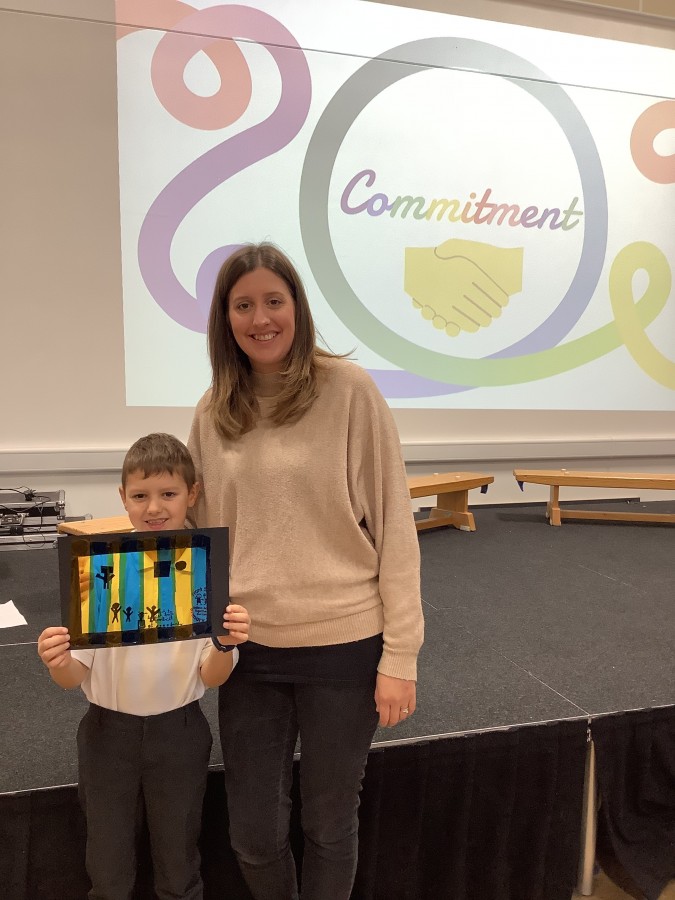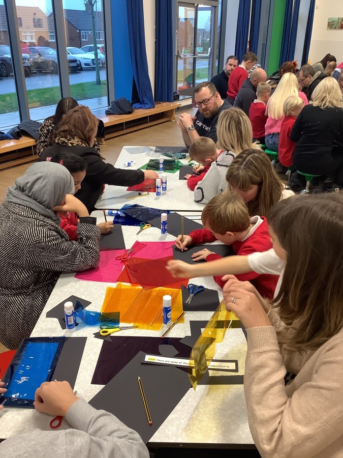 The Year 3 children absolutely loved having their grown ups come to visit them at school today. They told them all about what the word commitment means and made a stained glass window to represent something they are committed to.