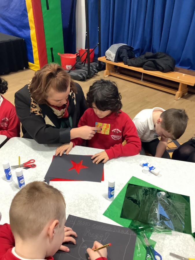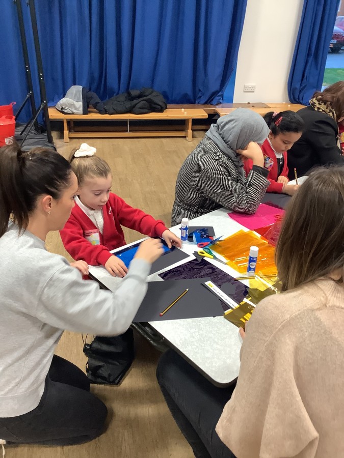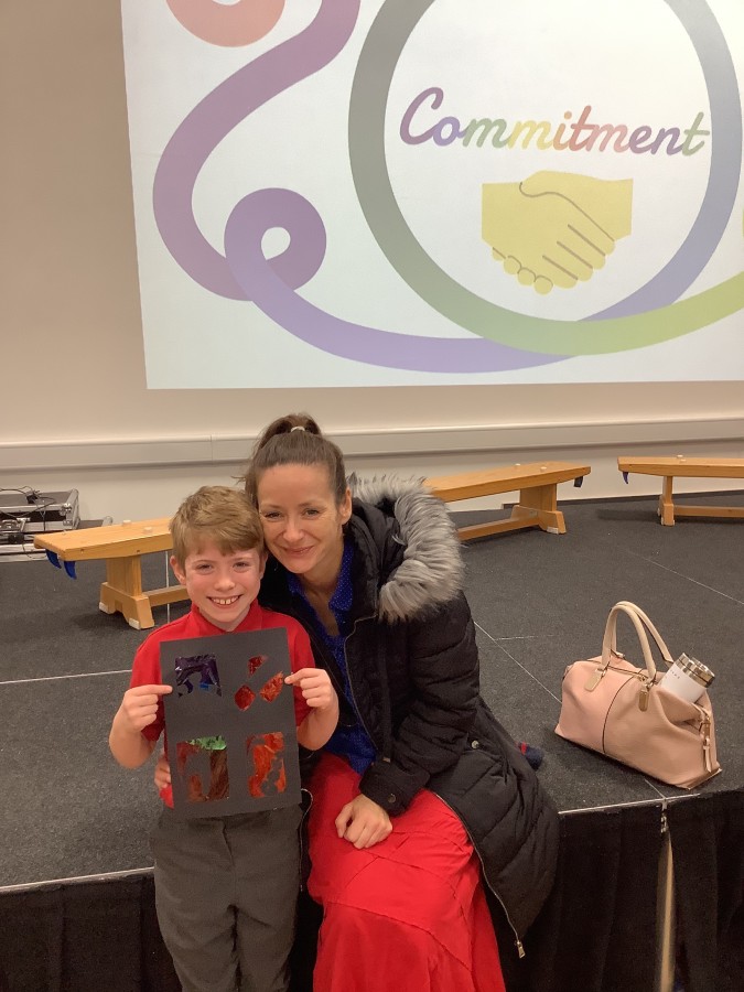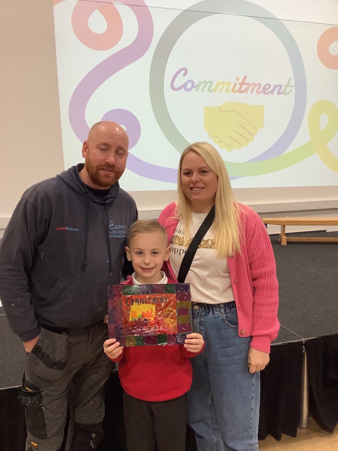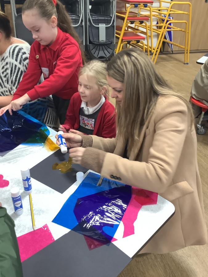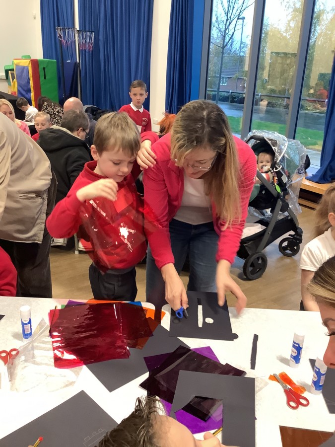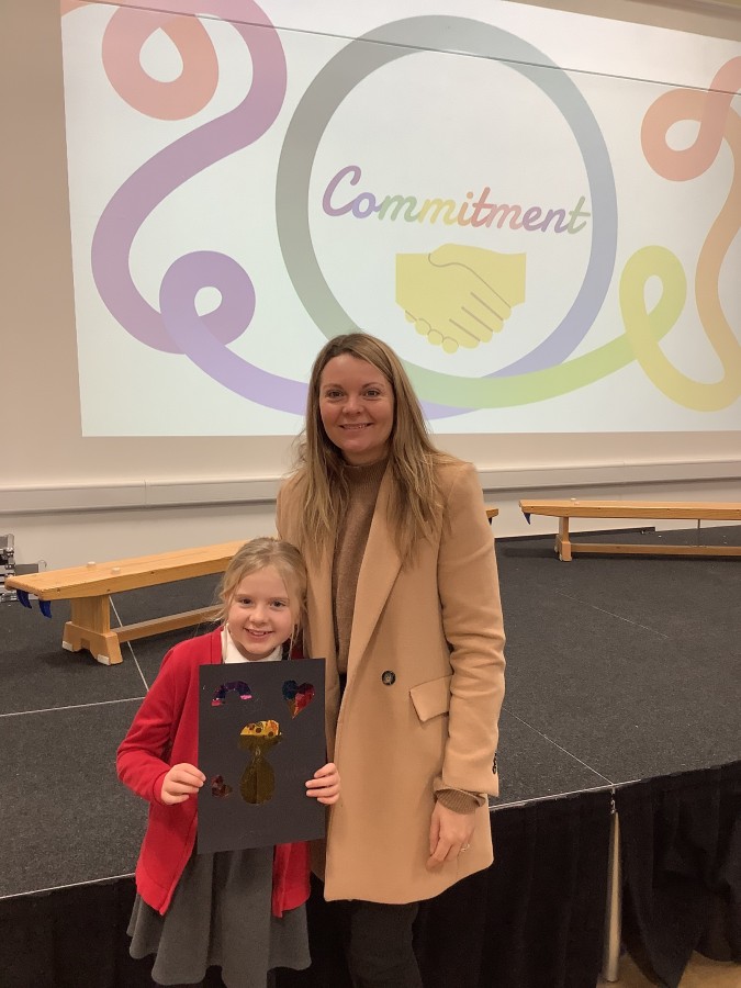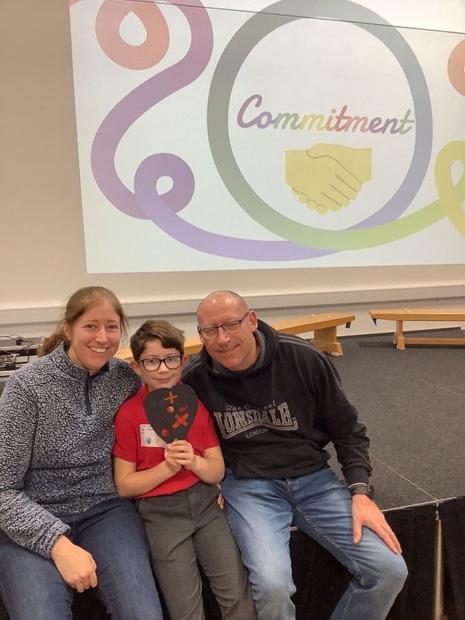 The Year 3 children absolutely loved having their grown ups come to visit them at school today. They told them all about what the word commitment means and made a stained glass window to represent something they are committed to.