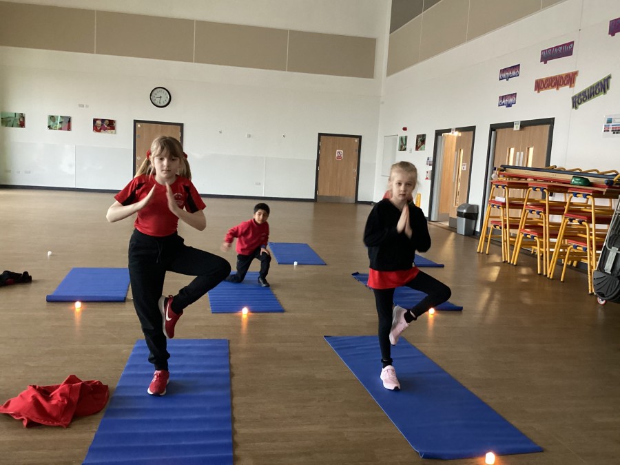 Today was the first day of Year 3 and 4 Yoga Club. The children started by learning a sun salutation, learnt 4 new yoga poses (mountain, chair, tree and rainbow) and ended with Savasna, a time for relaxation. We were ready to start our school day, with a clear and calm mind. Namaste.