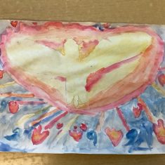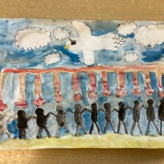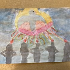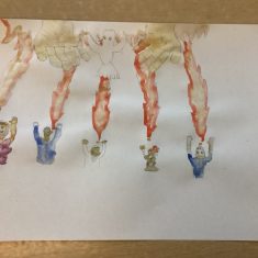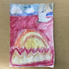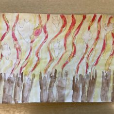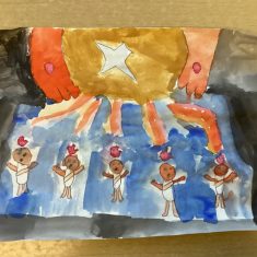 We have been learning about the Christian celebration of Pentecost. We explored the story and the symbols used to represent it, such as clouds, flames, wind and doves. Which ones can you spot in our artwork?