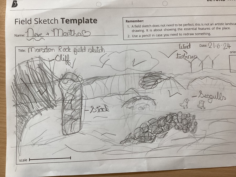 How are coasts changing? In Geography, we have been learning about the physical features of coasts and how they are formed. Today, we visited Marsden Bay to carry out some Geographical fieldwork. We did field sketches, measured pebbles for evidence of erosion and identified land use in the area.