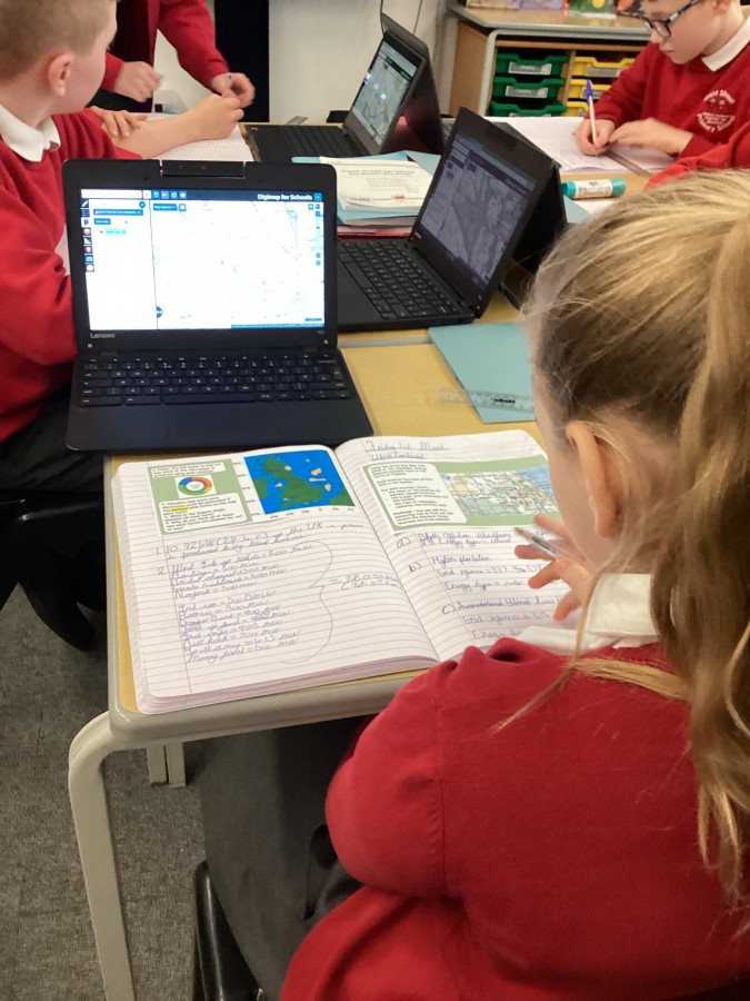 In this lesson our learning went digital as we completed our Digi-map challenge. We located a series of pins on our digital map and discovered that in our own region there many sources of energy. We found there were solar and wind farms in our region; water recycling centres, managed forest areas and evidence of past industries such as coal mining.