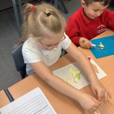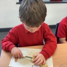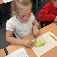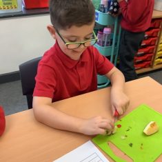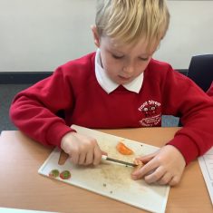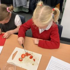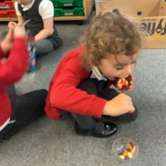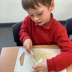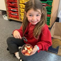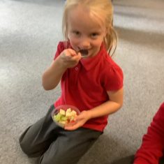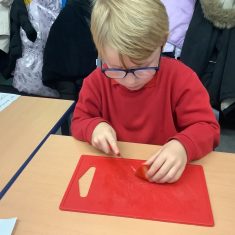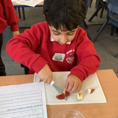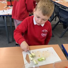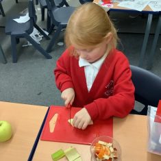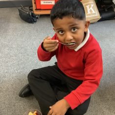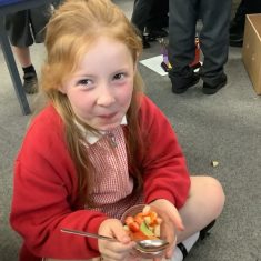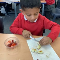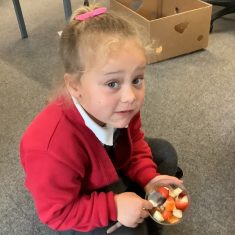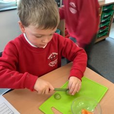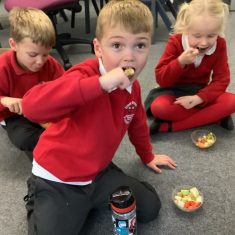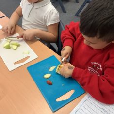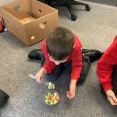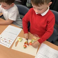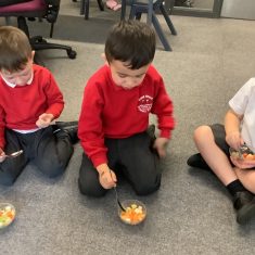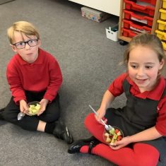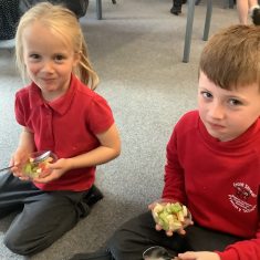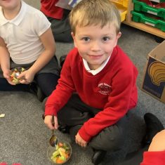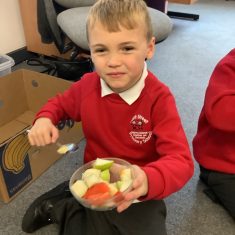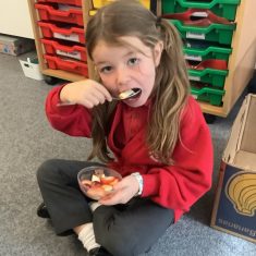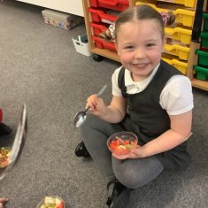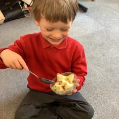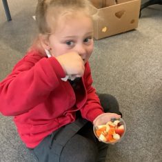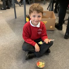 Everyone tried their fruit salad – even those who said they didn’t like fruit – and straight away the children started to discuss what they liked, what they would change etc.